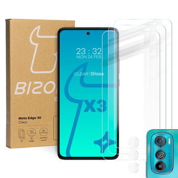 3x Szkło hartowane + szybka na aparat Bizon Glass Clear Pack do Motorola Edge 30