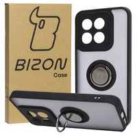 Etui z uchwytem na palec Bizon Case Hybrid Ring do Xiaomi 14, przydymione z czarną ramką