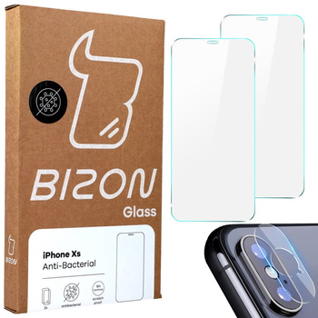 Szkło hartowane Bizon Glass Anti-Bacterial - 2 szt. + obiektyw, iPhone Xs