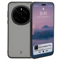 Etui z pierścieniem magnetycznym Bizon Case MatteO do Honor Magic7 Pro, półprzezroczyste z czarną ramką