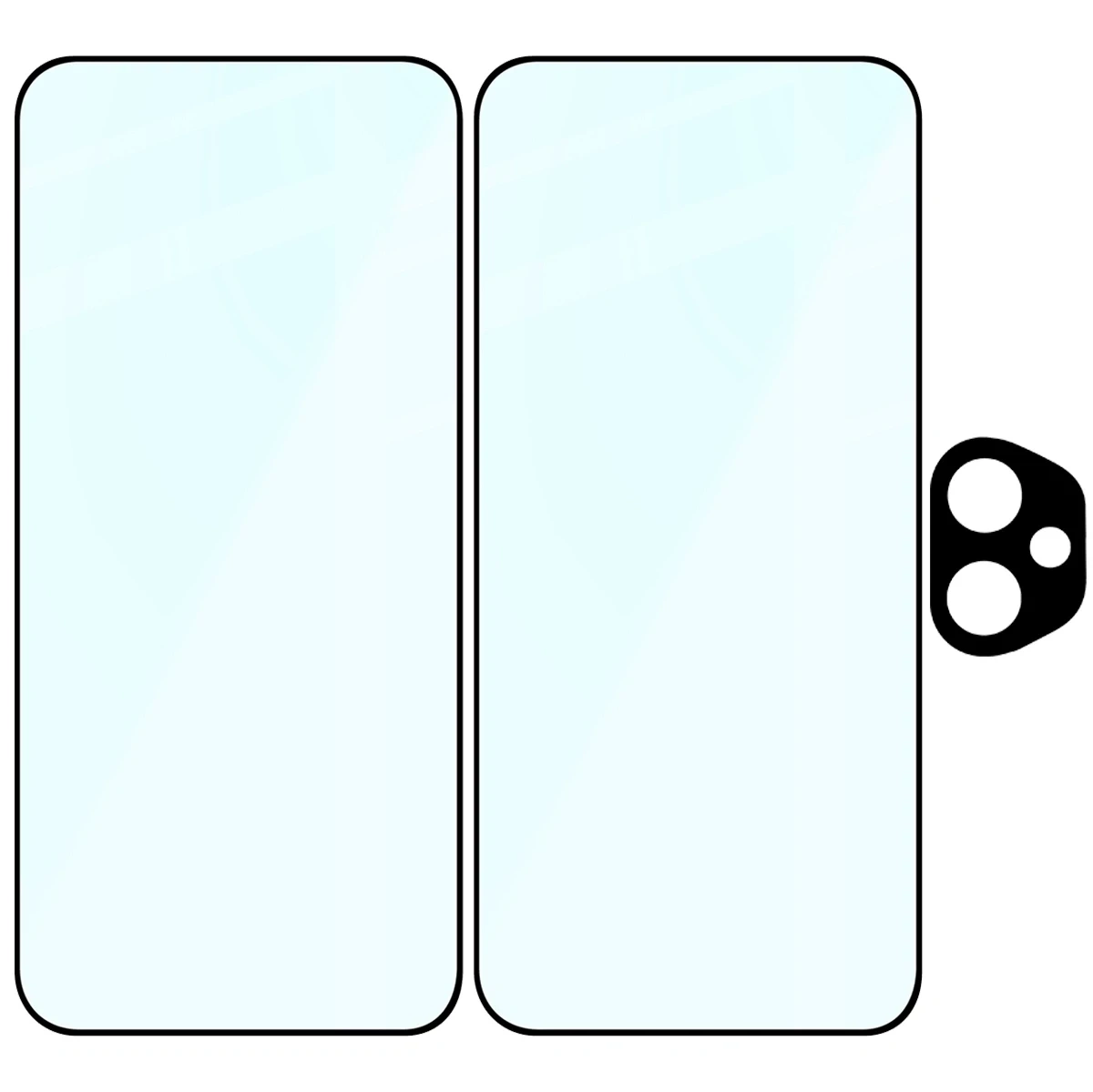 Bizon Glass Edge 2 Pack, oprócz 2 sztuk szkła hartowanego na wyświetlacz i 1 sztuki nakładki na aparat, zawiera: