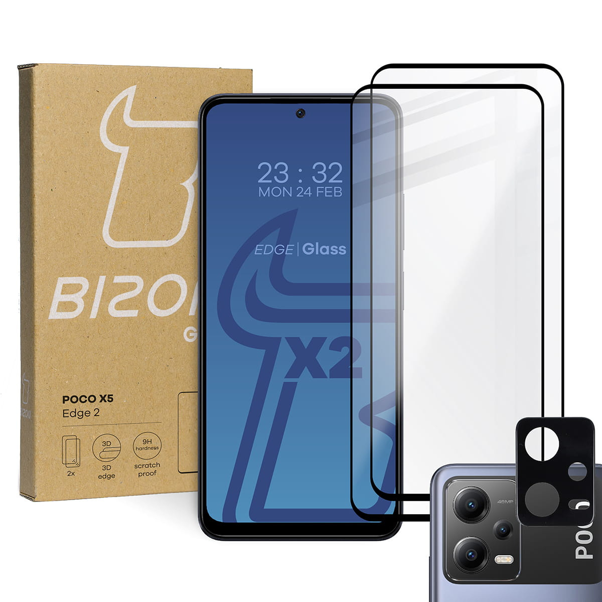 2x Szkło + szybka na aparat Bizon Edge 2 Pack do Poco X5
