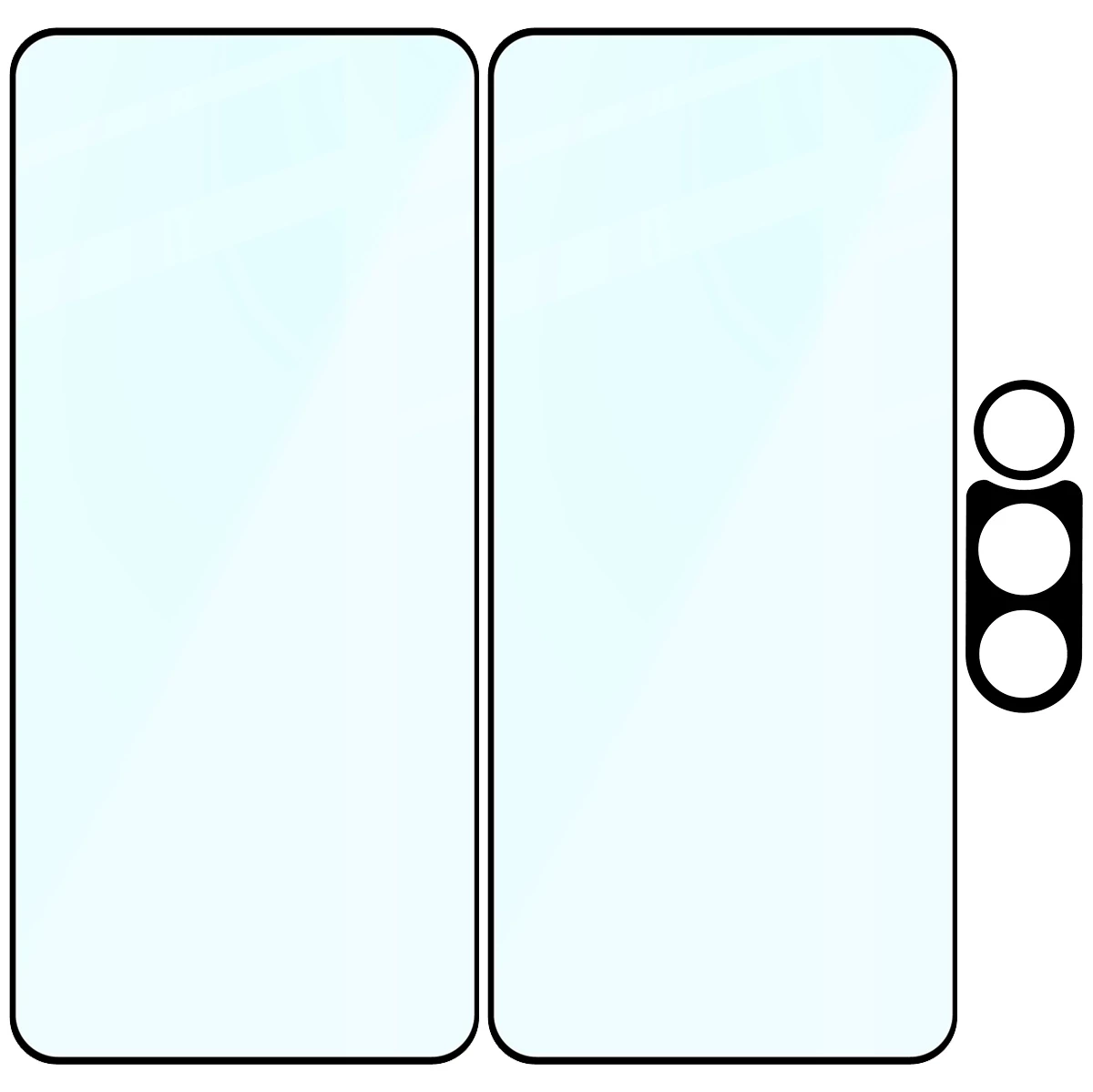 Bizon Glass Edge 2 Pack, oprócz 2 sztuk szkła hartowanego na wyświetlacz i 1 sztuki nakładki na aparat, zawiera: