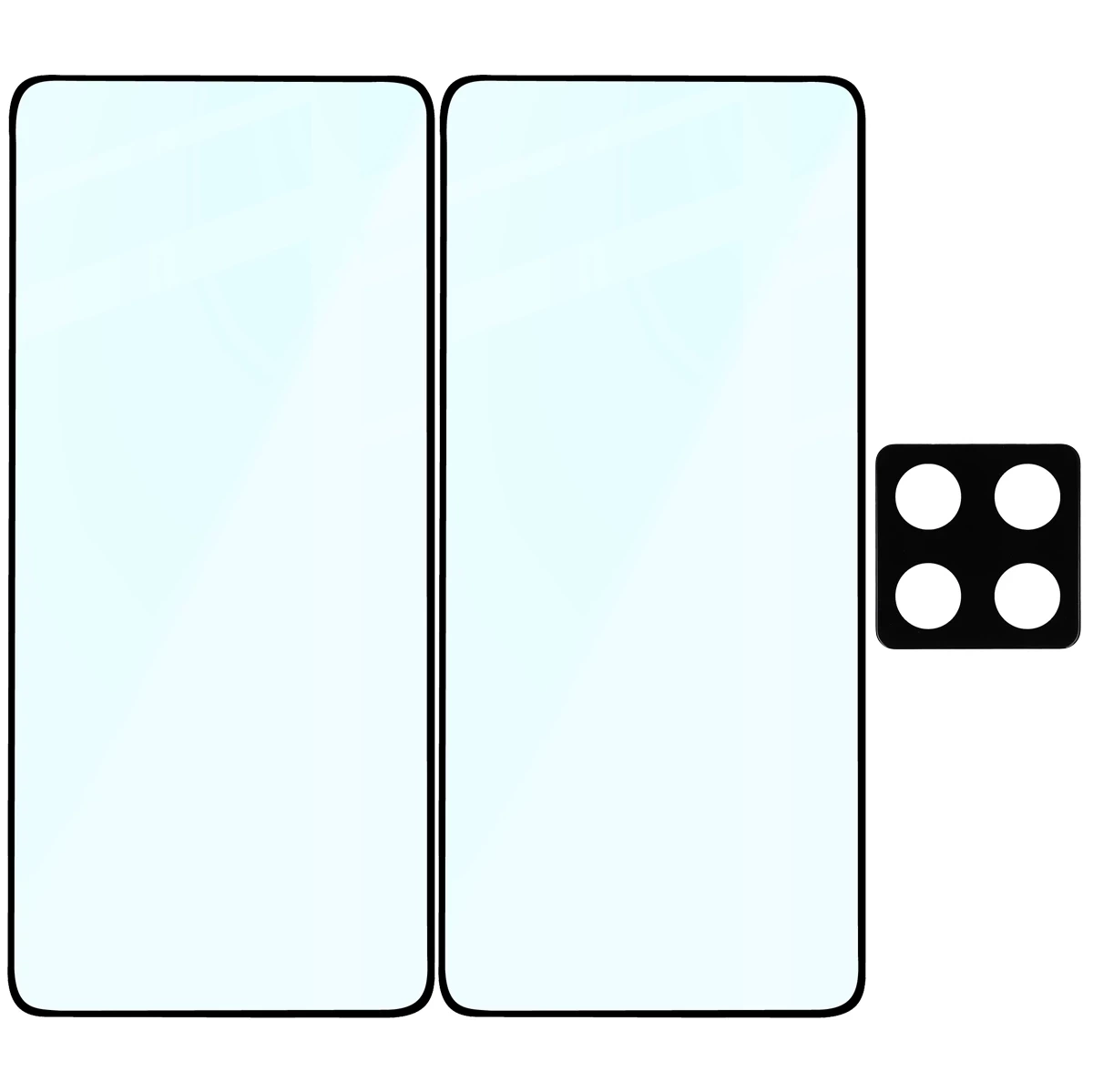 Bizon Glass Edge 2 Pack, oprócz 2 sztuk szkła hartowanego na wyświetlacz i 1 sztuki nakładki na aparat, zawiera: