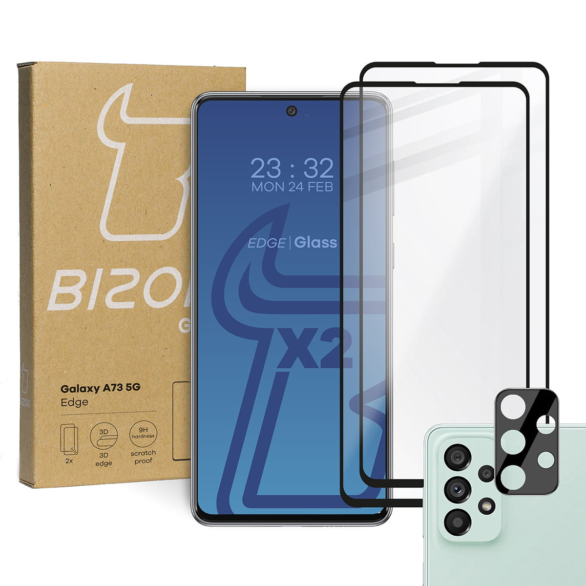 2x Szkło + szybka na aparat Bizon Edge Pack do Galaxy A73