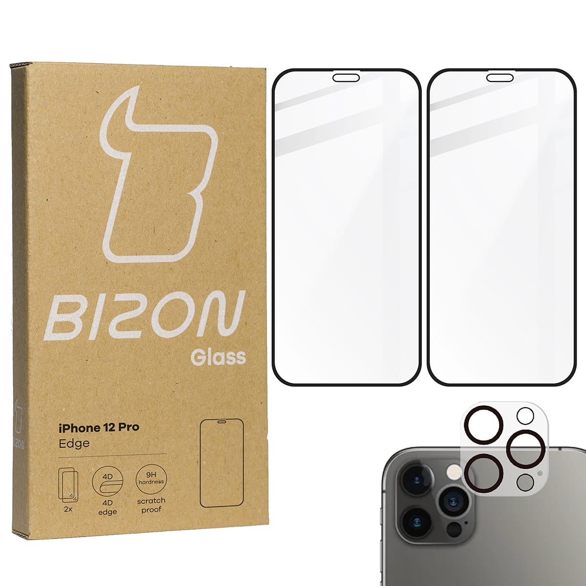 2x Szkło + szybka na aparat Bizon Edge Pack do iPhone 12 Pro