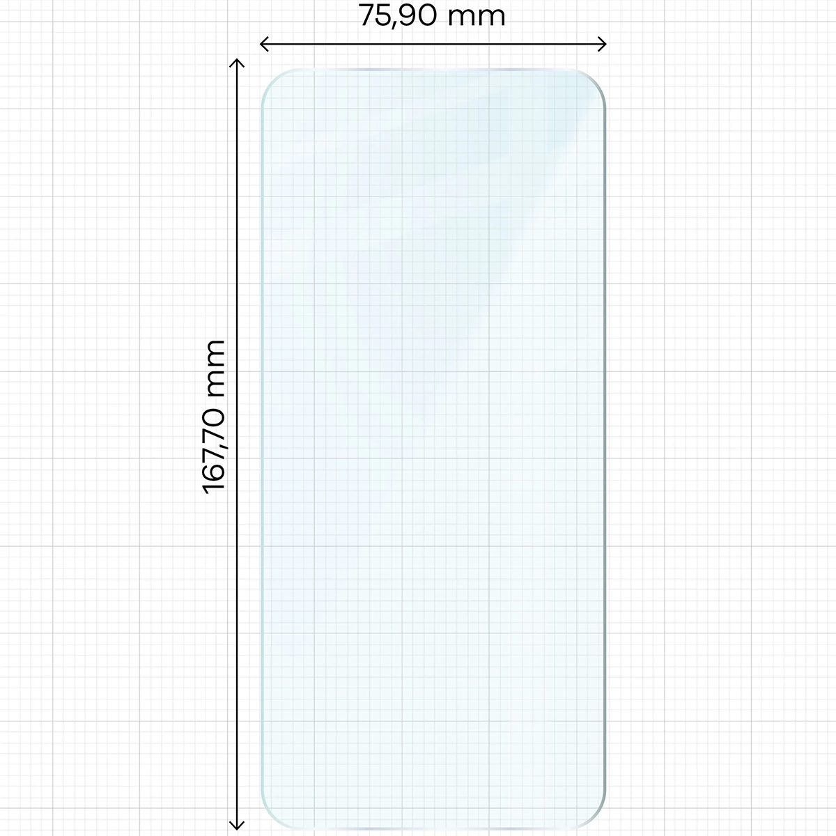 Wymiary szkła: 16,77 x 7,59 cm