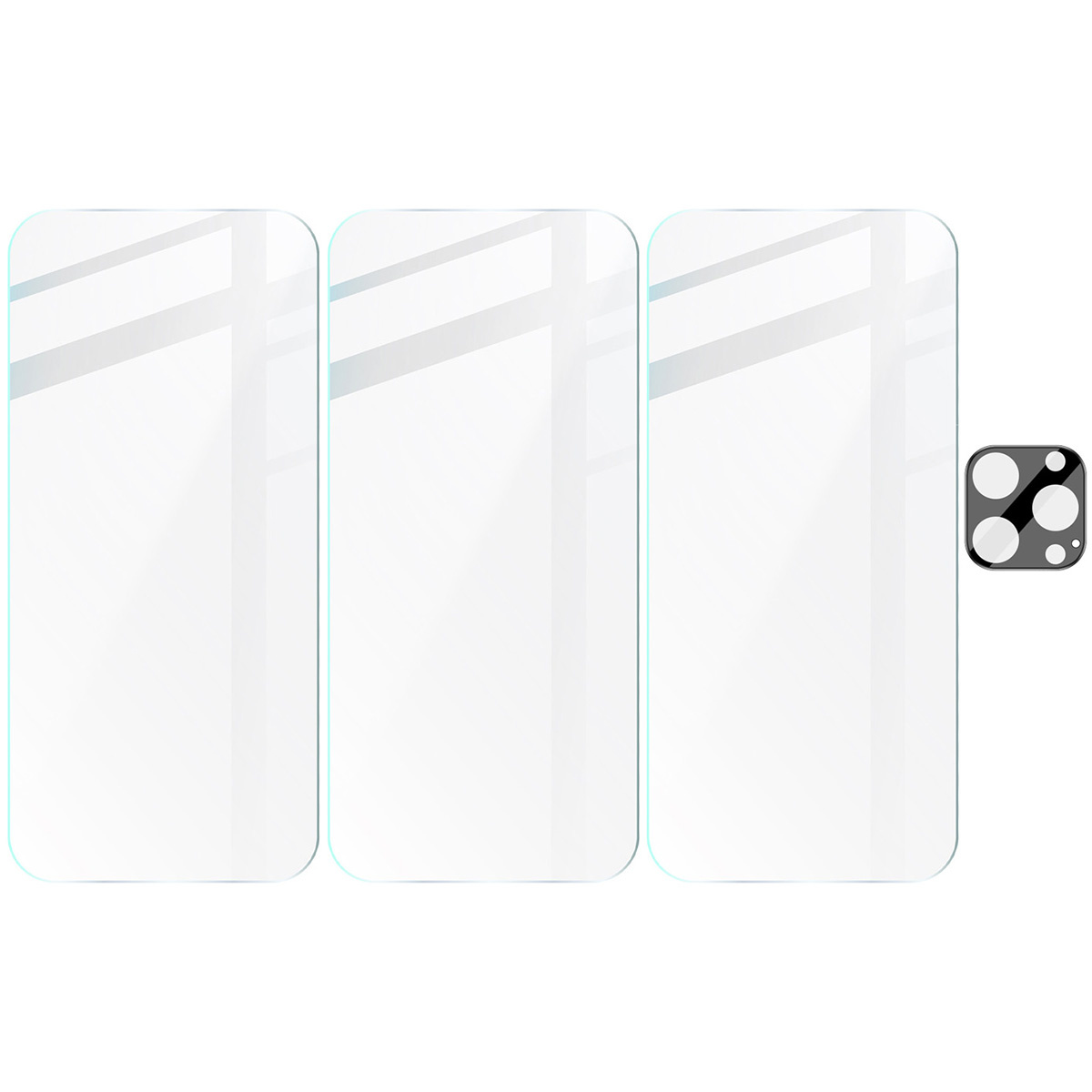 Bizon Glass Clear 2 Pack, oprócz 3 sztuk szkła hartowanego na wyświetlacz i 1 sztuki nakładki na aparat, zawiera: