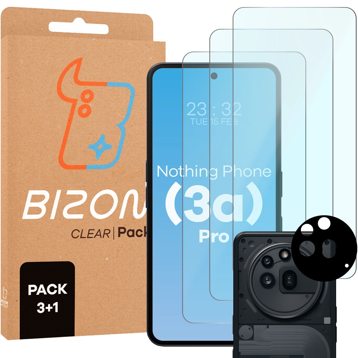 3x Szkło + szybka na aparat Bizon Clear 2 Pack do Nothing Phone (3a) Pro