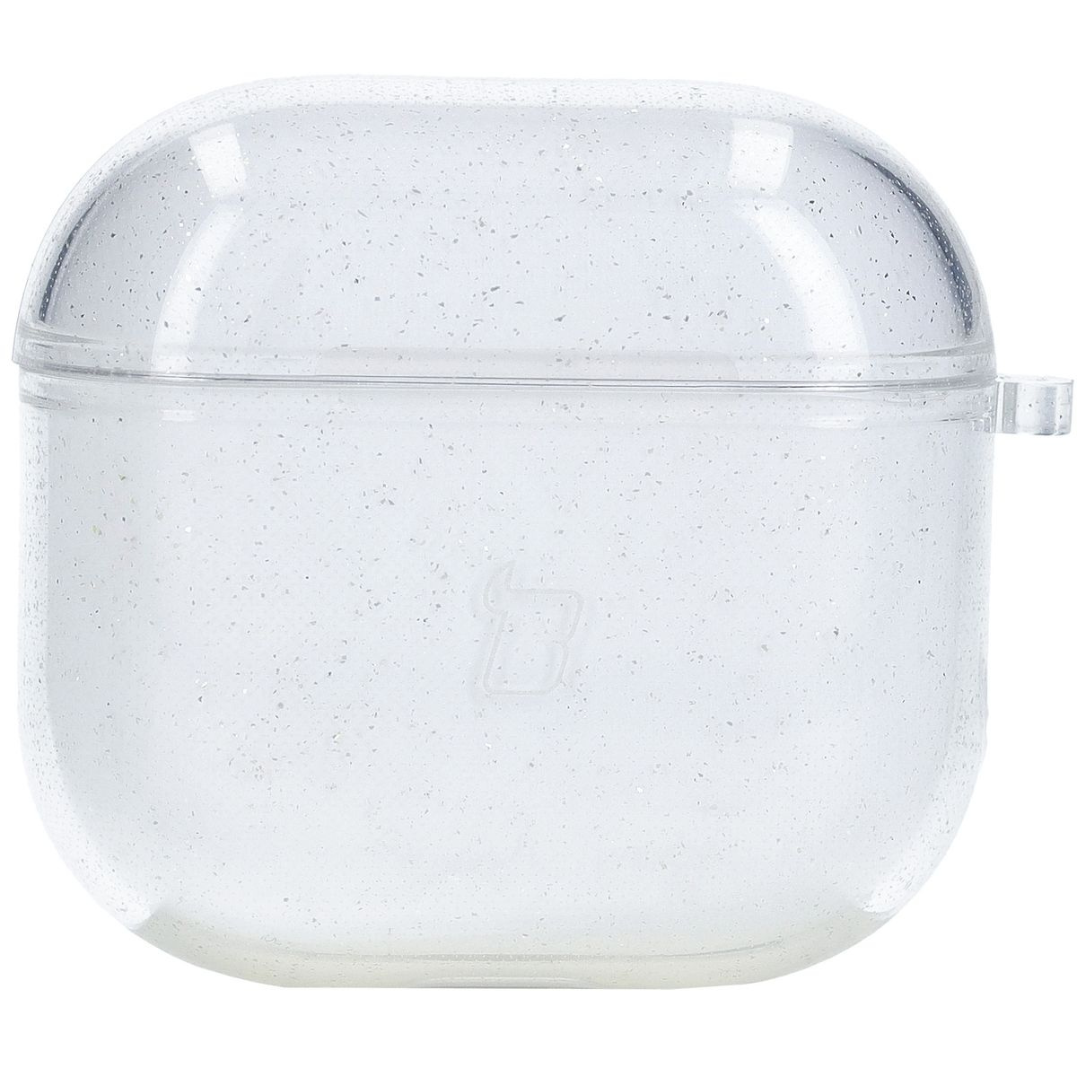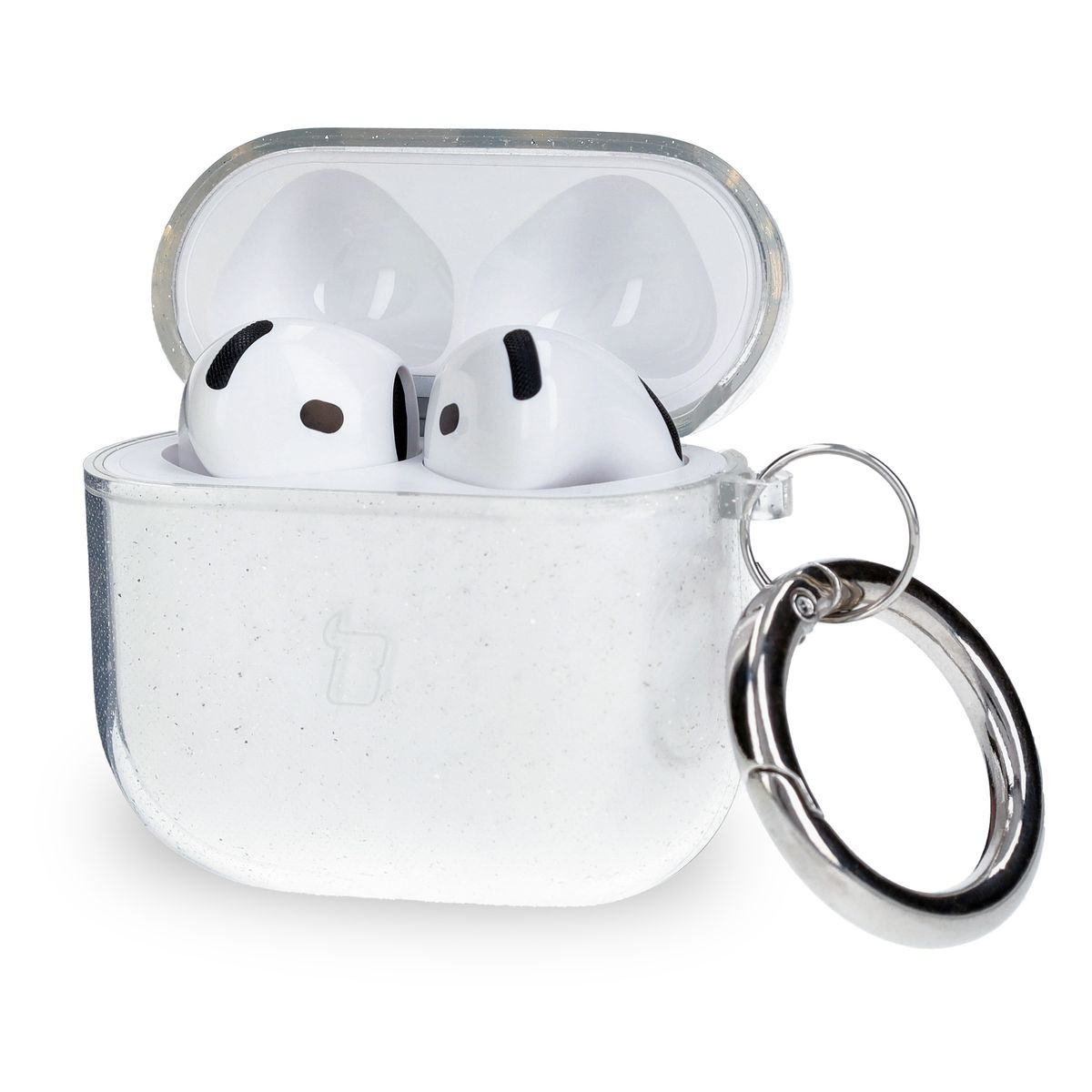 Elastyczne etui z karabińczykiem Bizon Case Headphone Clear do AirPods 4 przezroczysto-brokatowe