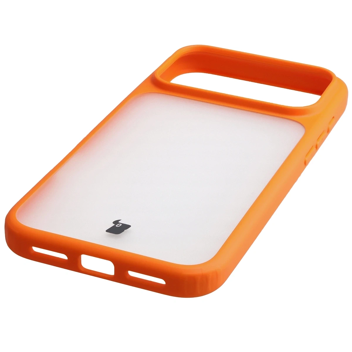 - Matowe etui, mleczna obudowa - nieważne, jak na to mówisz, ważne, że udało Ci się znaleźć półprzeźroczyste etui z pomarańczową ramką Bizon Case Angelo do Apple iPhone 17 Pro Max!