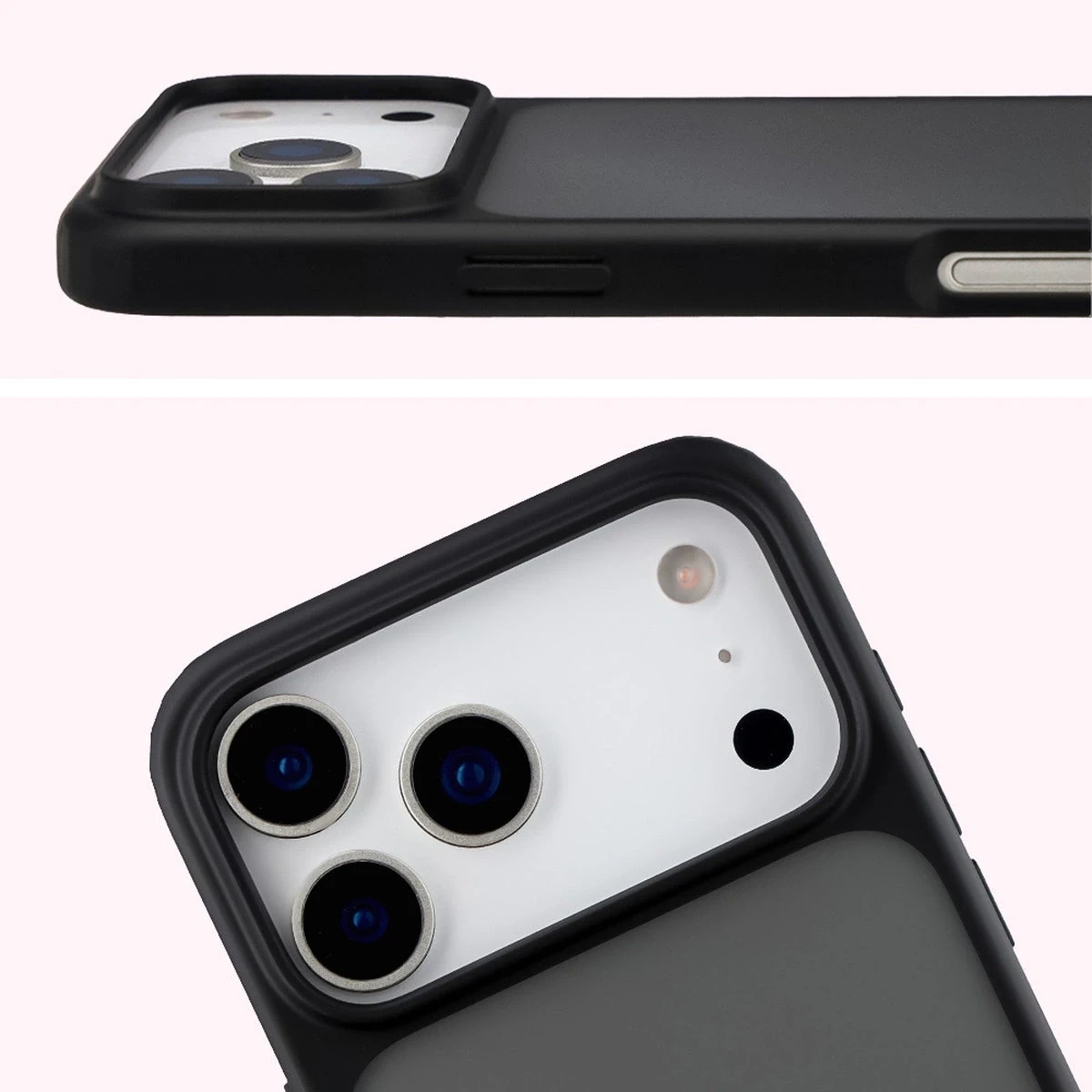 - Matowe etui, mleczna obudowa - nieważne, jak na to mówisz, ważne, że udało Ci się znaleźć przydymione etui z czarną ramką Bizon Case Angelo do Apple iPhone 17 Pro Max!