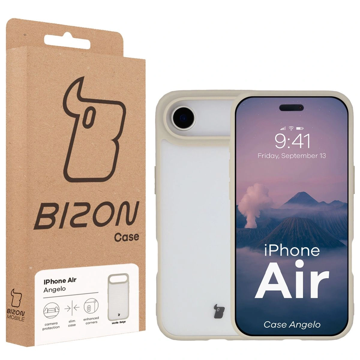 - Matowe etui, mleczna obudowa - nieważne, jak na to mówisz, ważne, że udało Ci się znaleźć półprzeźroczyste etui z beżową ramką Bizon Case Angelo do Apple iPhone Air!