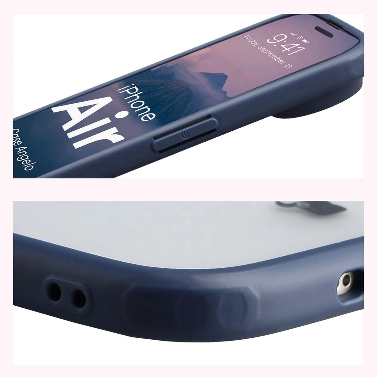 Etui Bizon Case Angelo do iPhone Air, półprzezroczyste z granatową ramką