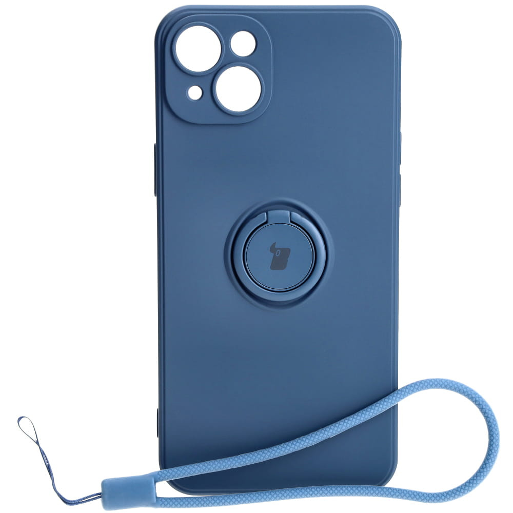 - Etui z pierścieniem marki Bizon Case z serii Silicone Ring dla Apple iPhone 15 Plus, granatowe.