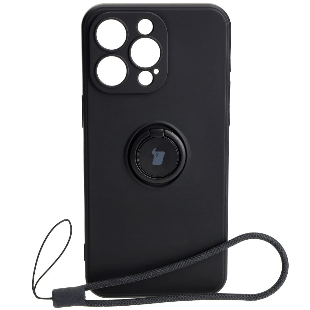 - Etui z pierścieniem marki Bizon Case z serii Silicone Ring dla Apple iPhone 15 Pro Max, czarne.