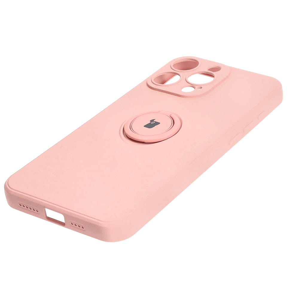 - Etui z pierścieniem marki Bizon Case z serii Silicone Ring dla Apple iPhone 15 Pro Max, jasnoróżowe.