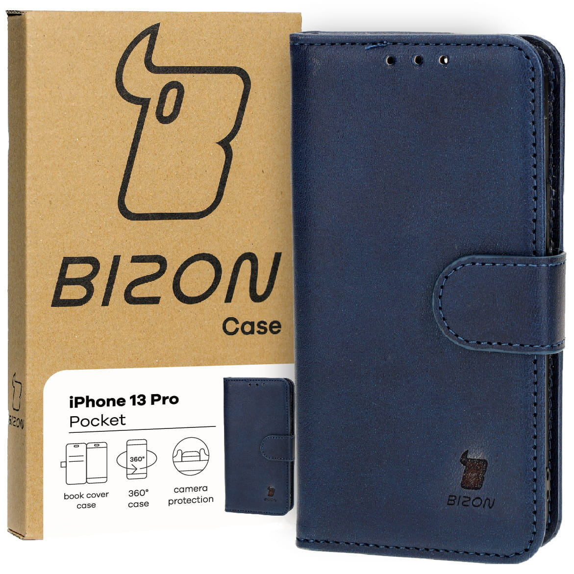 - Etui z klapką, zamykane, magnetyczne, obudowa 360, etui portfelowe, skórzane - nieważne, jak na to mówisz, ważne, że udało Ci się znaleźć granatowe etui Bizon Case Pocket do Apple iPhone 13 Pro!