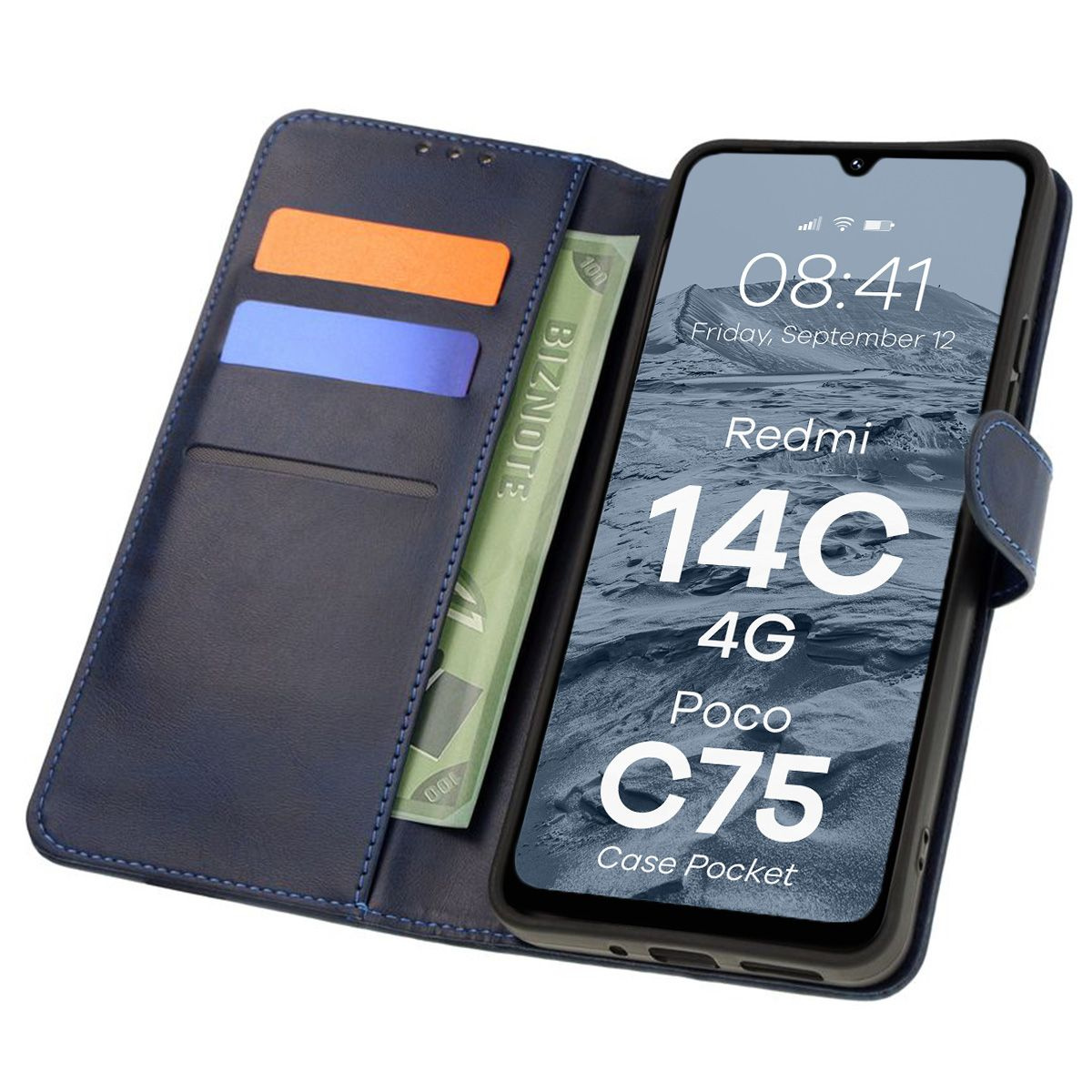 Etui z klapką Bizon Case Pocket do Xiaomi Redmi 14C 4G / POCO C75, granatowe