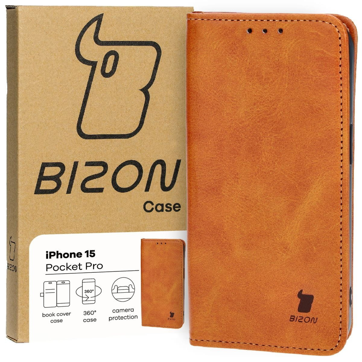 Etui z klapką Bizon Case Pocket Pro do iPhone 15, brązowe