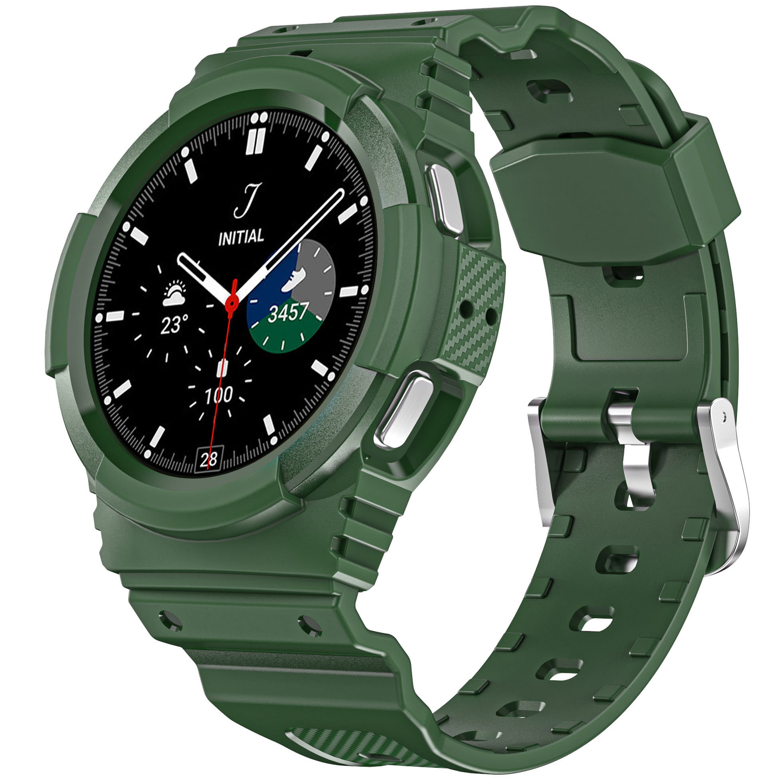 - Etui z paskiem Bizon Strap + Case Watch Action do Samsung Galaxy Watch 4 / 5 44mm, ciemnozielone