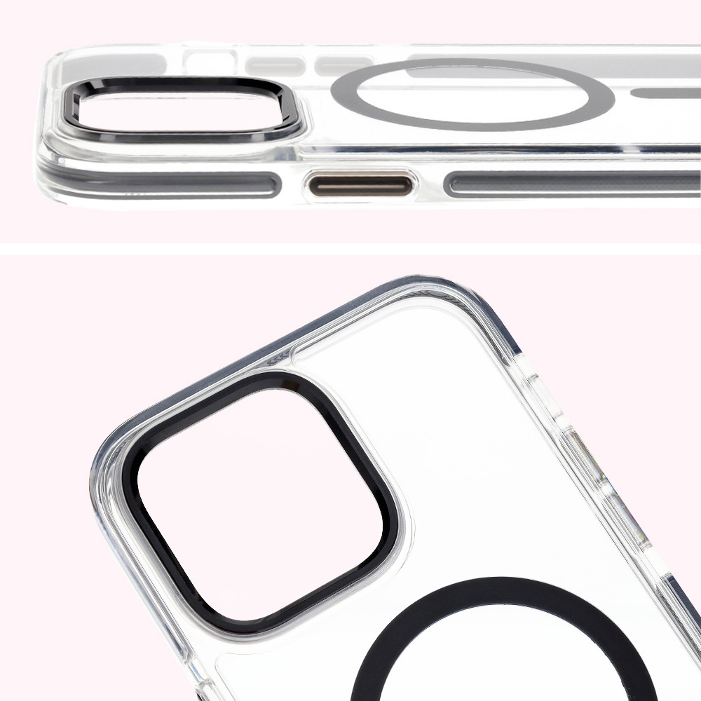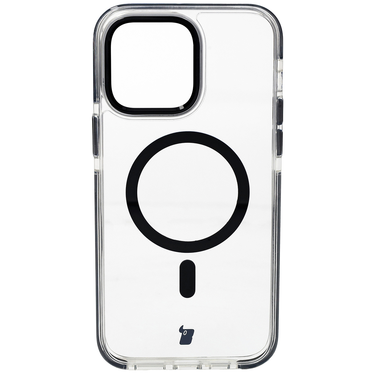 Etui z pierścieniem magnetycznym Bizon Case Marco do iPhone 14 Pro Max, przezroczyste z czarną ramką