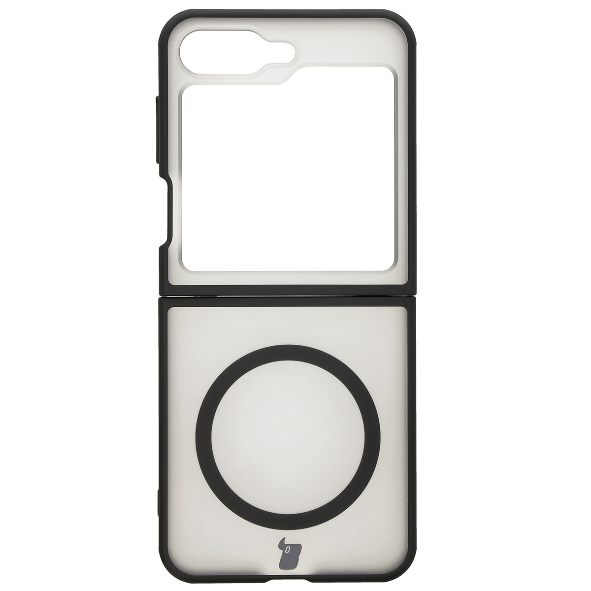 Etui z pierścieniem magnetycznym Bizon Case MatteO do Galaxy Z Flip7 FE / Z Flip6, półprzezroczyste z czarną ramką
