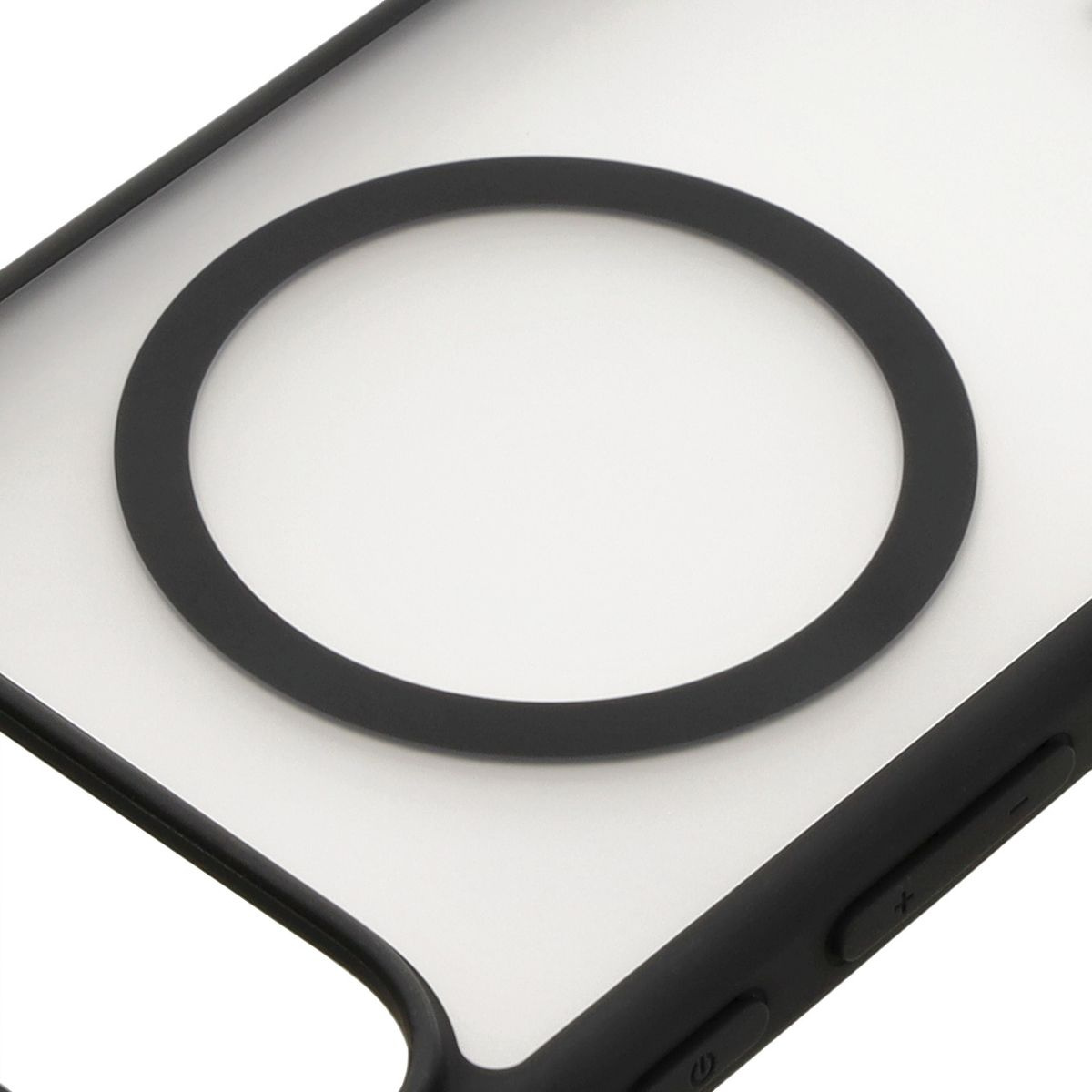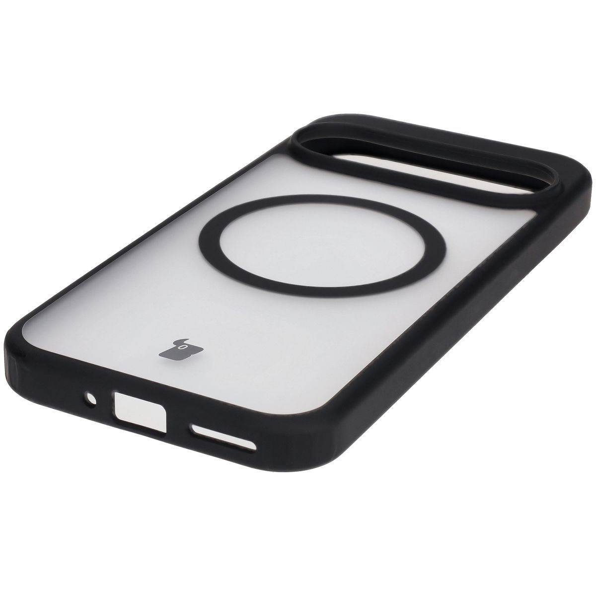 Etui z pierścieniem magnetycznym Bizon Case MatteO do Google Pixel 9/9 Pro, półprzezroczyste z czarną ramką
