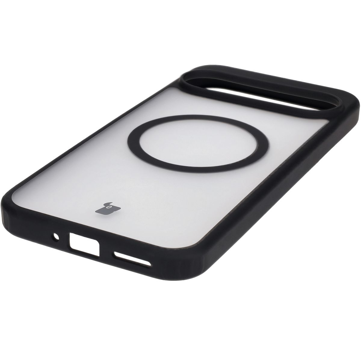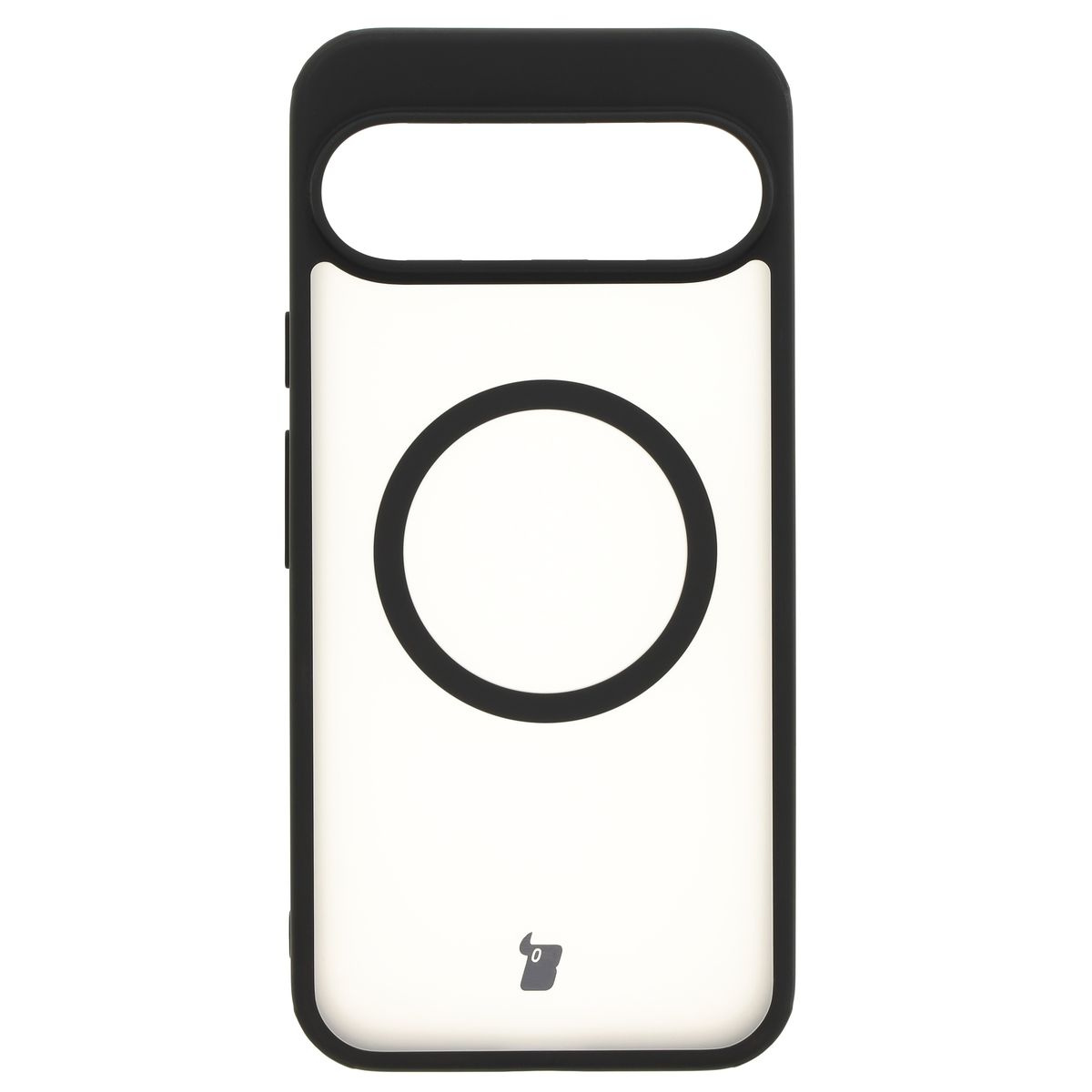 Etui z pierścieniem magnetycznym Bizon Case MatteO do Google Pixel 9 Pro XL, półprzezroczyste z czarną ramką