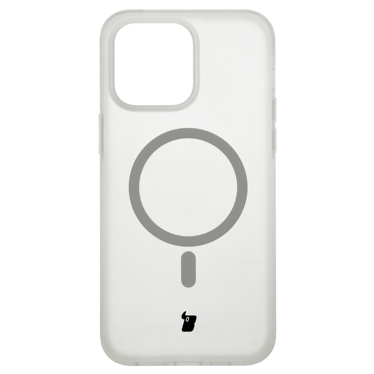 Etui z pierścieniem magnetycznym Bizon Case MatteO do iPhone 14 Pro Max, półprzezroczyste z przezroczystą ramką