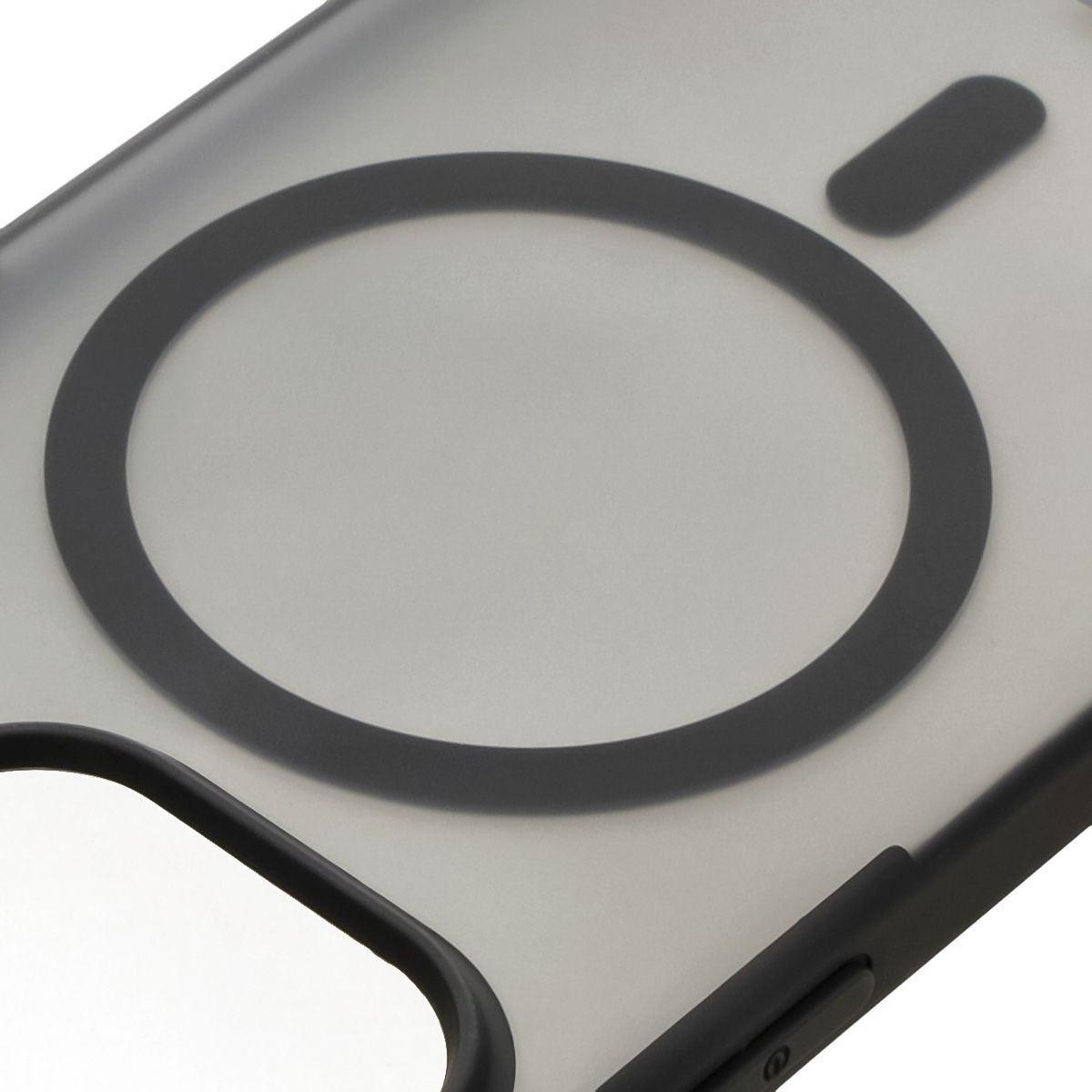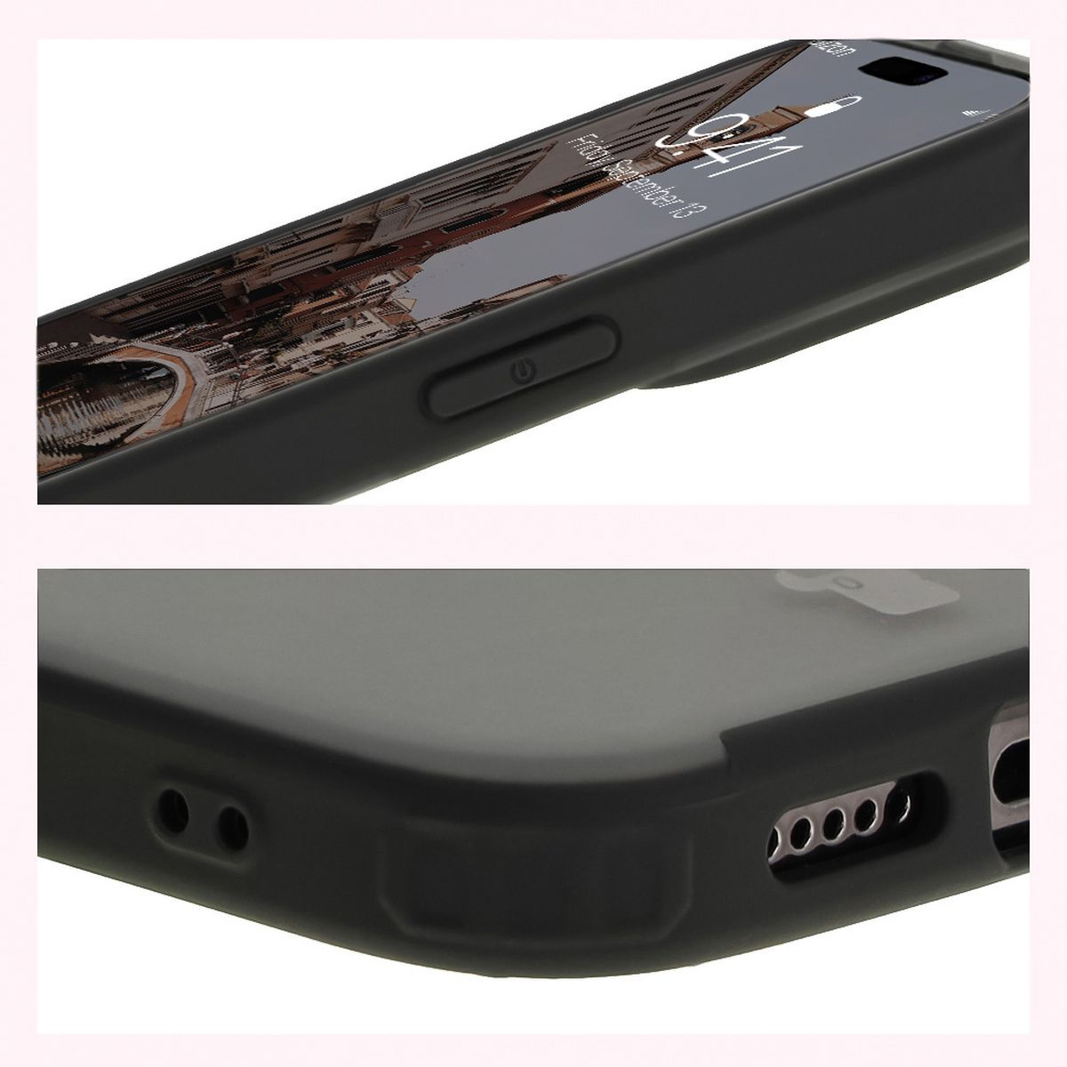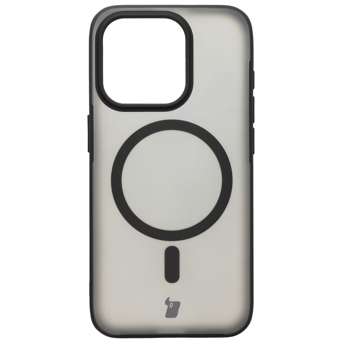 Etui z pierścieniem magnetycznym Bizon Case MatteO do iPhone 15 Pro, półprzezroczyste z czarną ramką