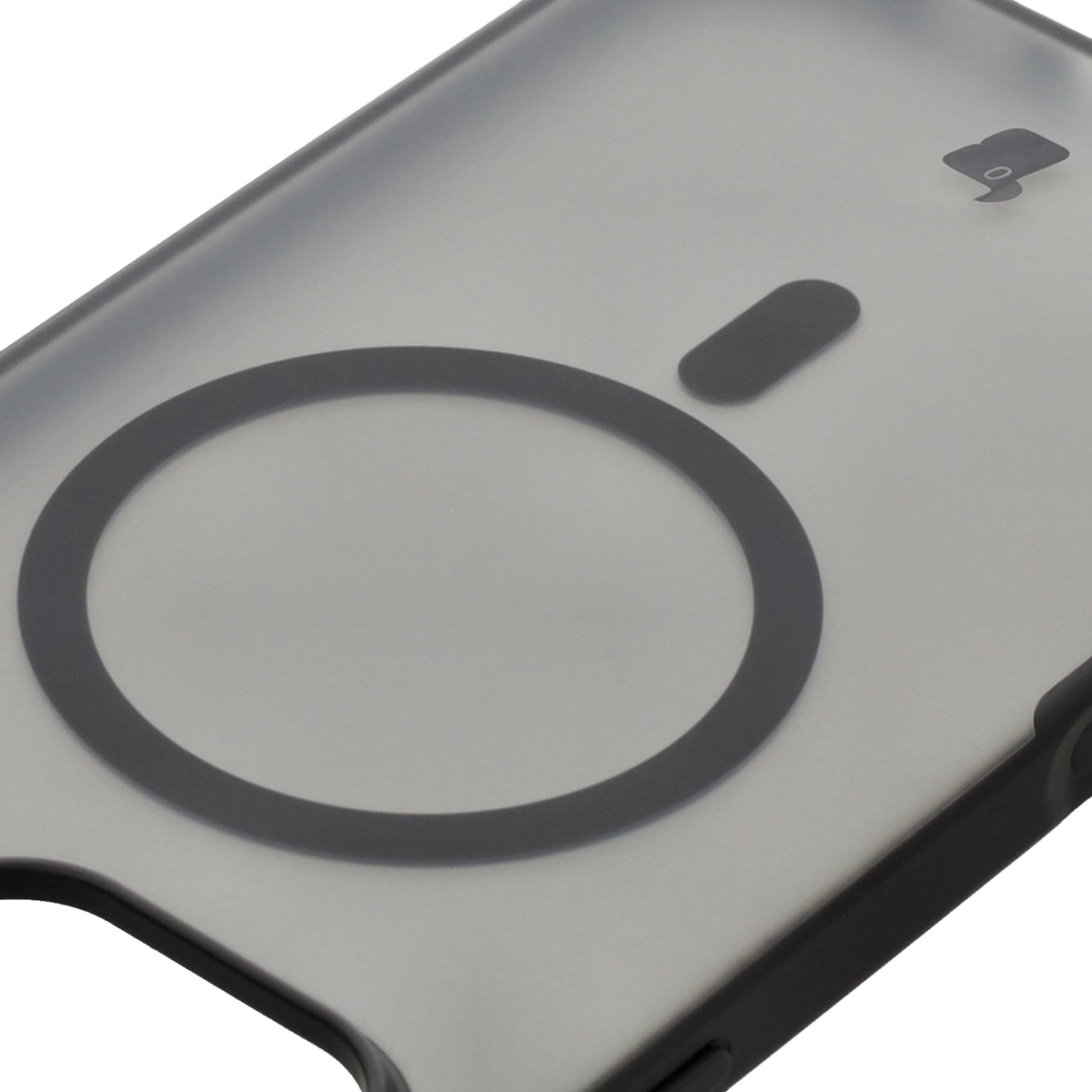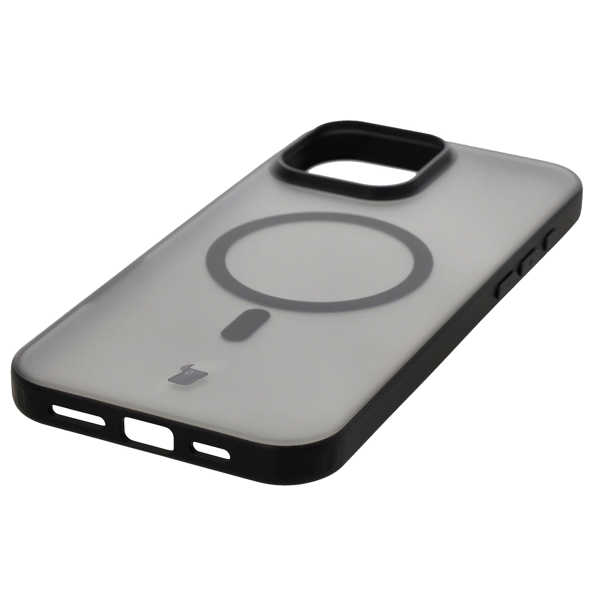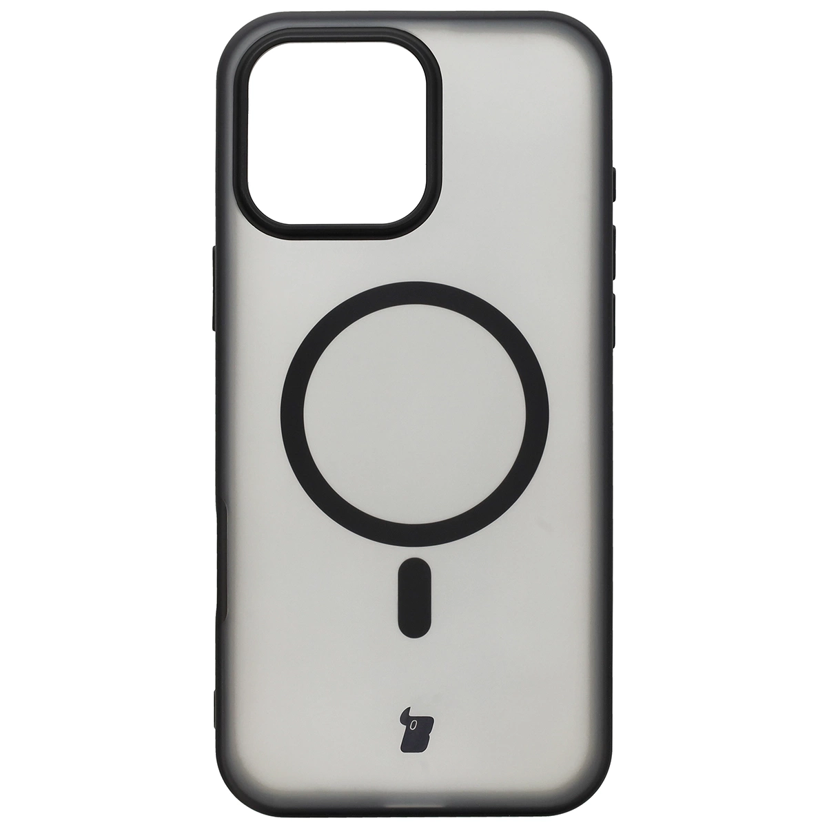 Etui z pierścieniem magnetycznym Bizon Case MatteO do iPhone 16 Pro Max, półprzezroczyste z czarną ramką