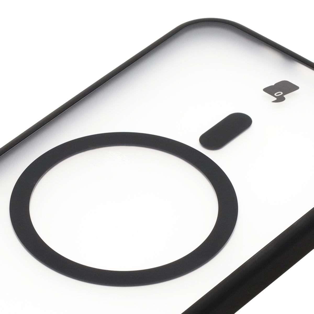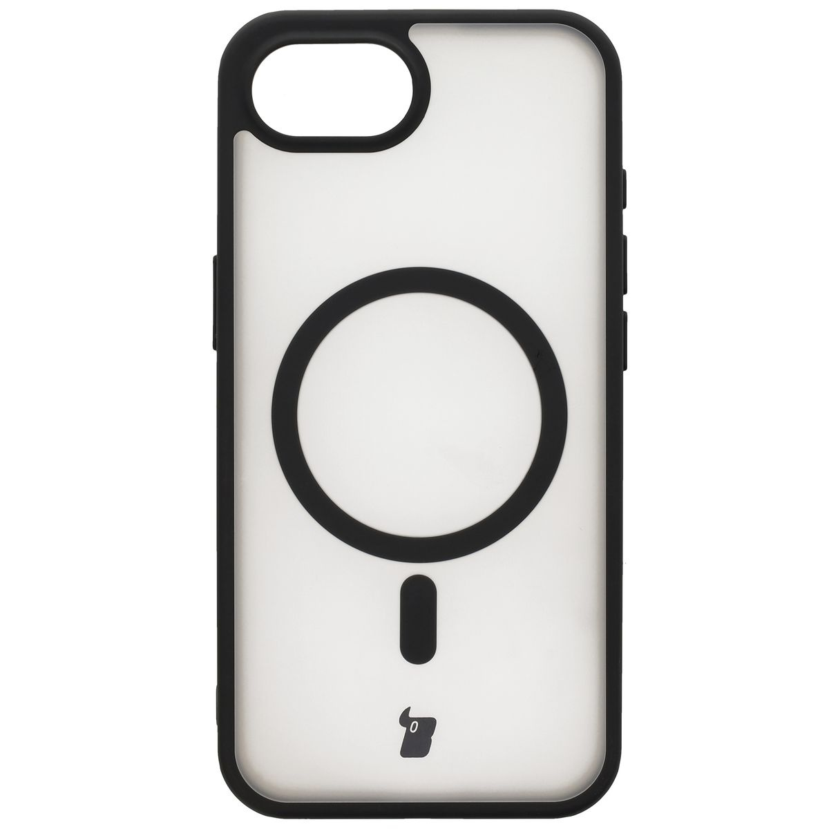 Etui z pierścieniem magnetycznym Bizon Case MatteO do iPhone 16e, półprzezroczyste z czarną ramką