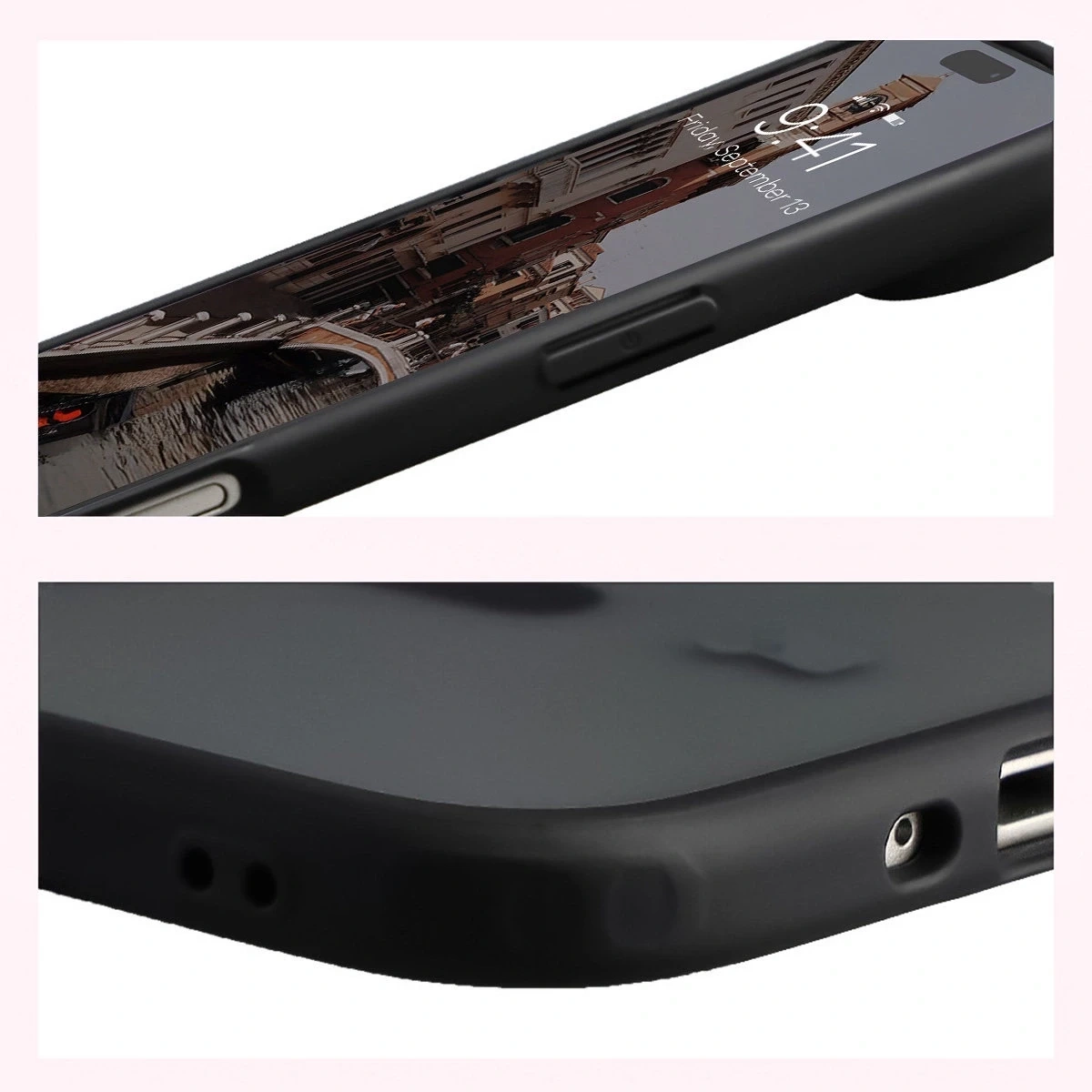 Ukryte w narożnikach specjalne poduszki powietrzne załagodzą skutki nieudanego rzutu telefonem na łóżko, z kolei lekko podwyższone krawędzie zabezpieczą ekran urządzenia przy odkładaniu go wyświetlaczem do dołu.