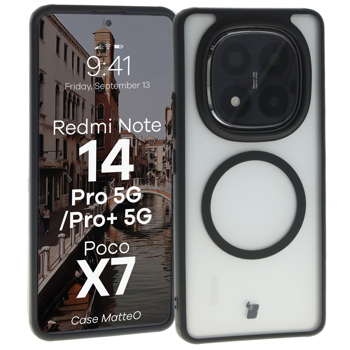 - Matowe etui, obudowa z pierścieniem magnetycznym - nieważne, jak na to mówisz, ważne, że udało Ci się znaleźć półprzezroczyste etui z czarną ramką Bizon Case MatteO do Xiaomi Redmi Note 14 Pro 5G / Xiaomi Redmi Note 14 Pro Plus 5G / Xiaomi Poco X7!