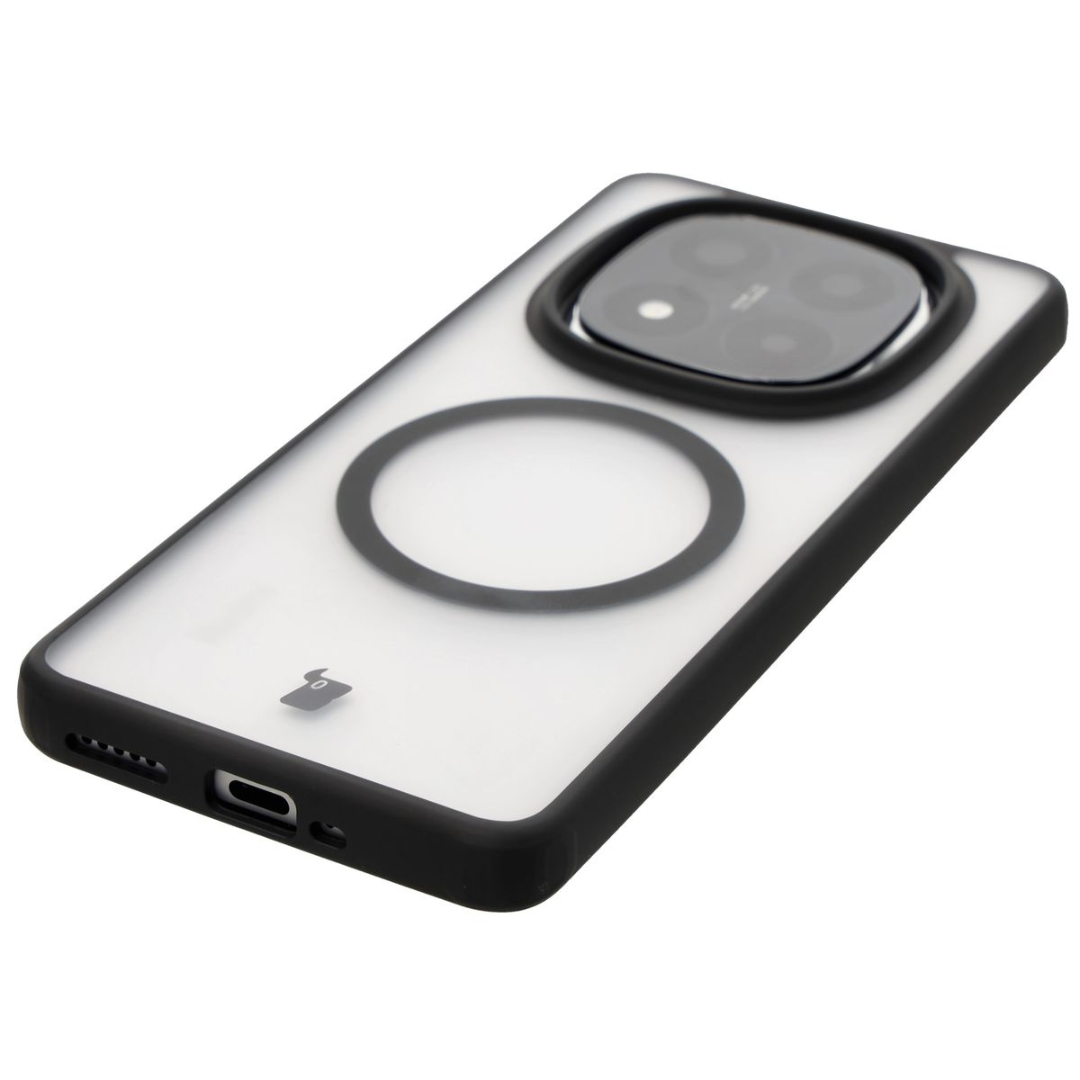 Etui z pierścieniem magnetycznym Bizon Case MatteO do Xiaomi Redmi Note 14 Pro 5G / 14 Pro Plus 5G / Poco X7, półprzezroczyste z czarną ramką