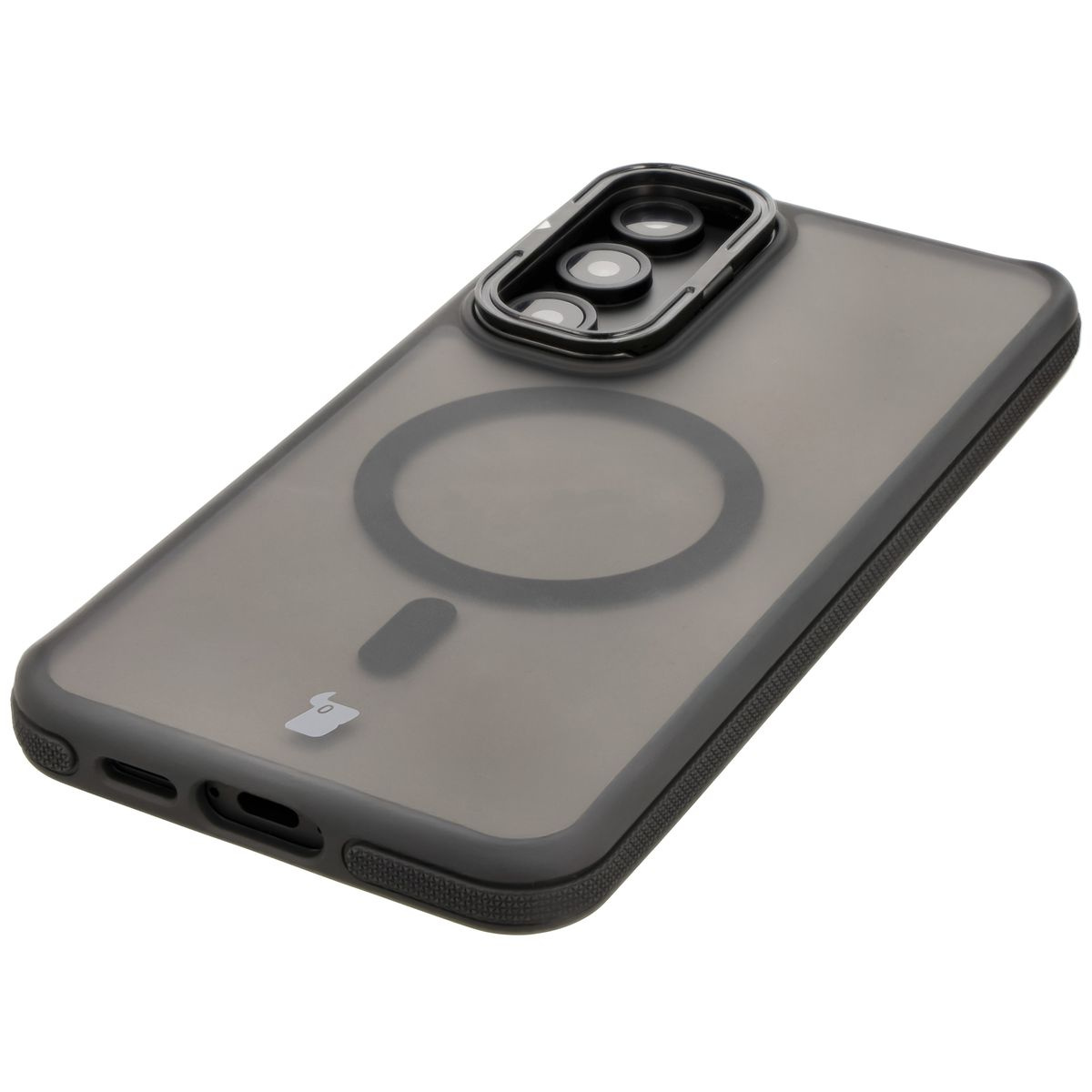 - Matowe etui, obudowa z pierścieniem magnetycznym, case z podstawką - nieważne, jak na to mówisz, ważne, że udało Ci się znaleźć przydymione etui z czarną ramką Bizon Case Eclipse do Samsung Galaxy S24 FE!