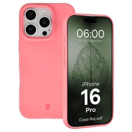 - Etui eko, ekologiczne etui, etui z recyklingu - nieważne, jak na to mówisz, ważne, że udało Ci się znaleźć różowe etui Bizon Case ReLeaf do Apple iPhone 16 Pro!