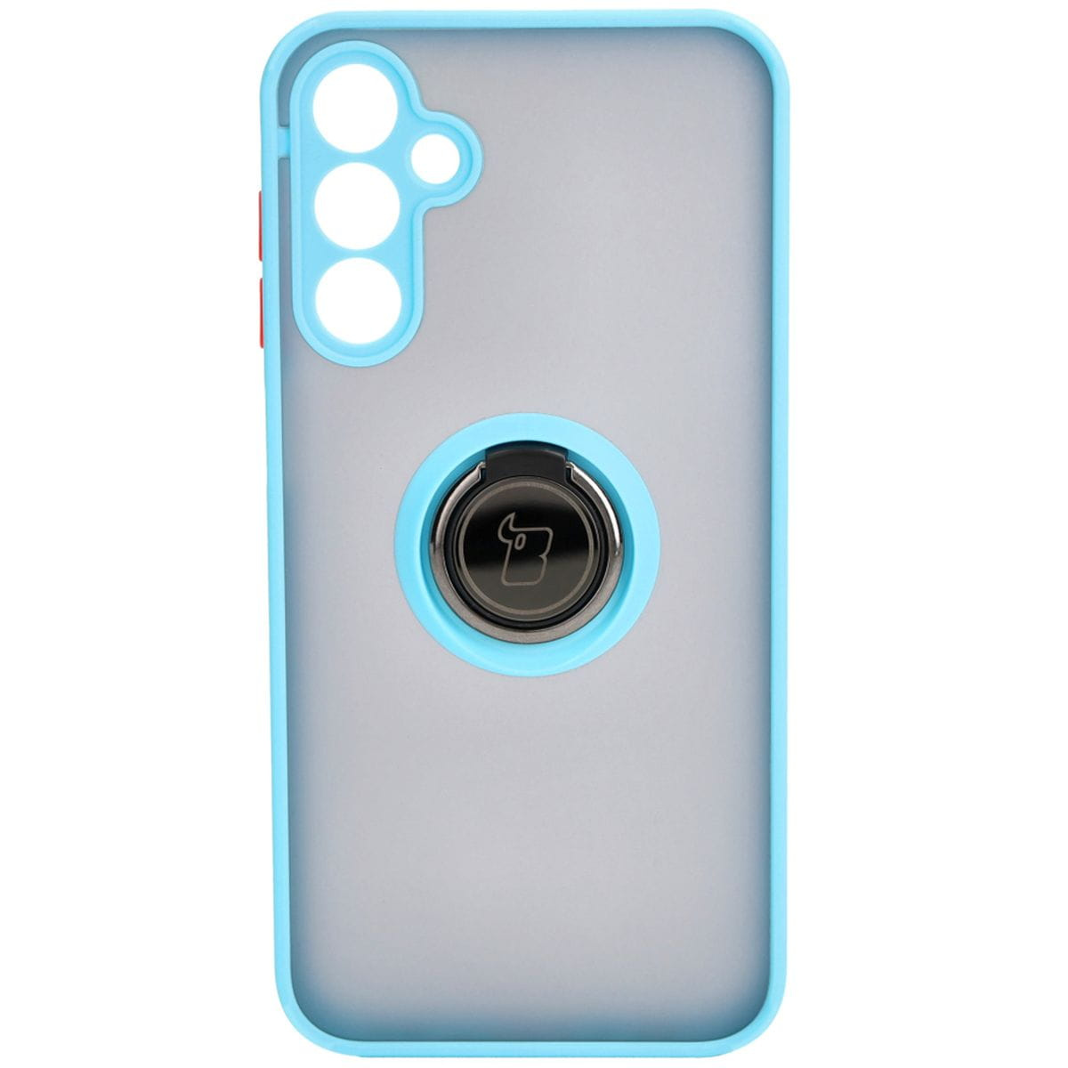 Etui z uchwytem na palec Bizon Case Hybrid Ring do Galaxy A15 5G/4G, przydymione z jasnoniebieską ramką