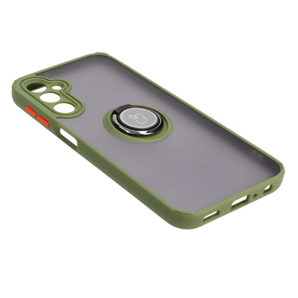 Etui z uchwytem na palec Bizon Case Hybrid Ring do Galaxy A24 4G, przydymione z zieloną ramką