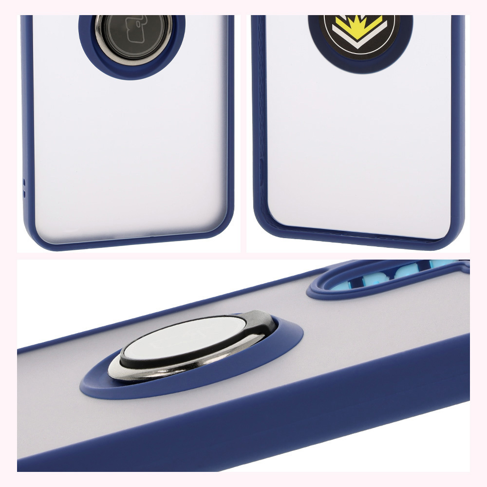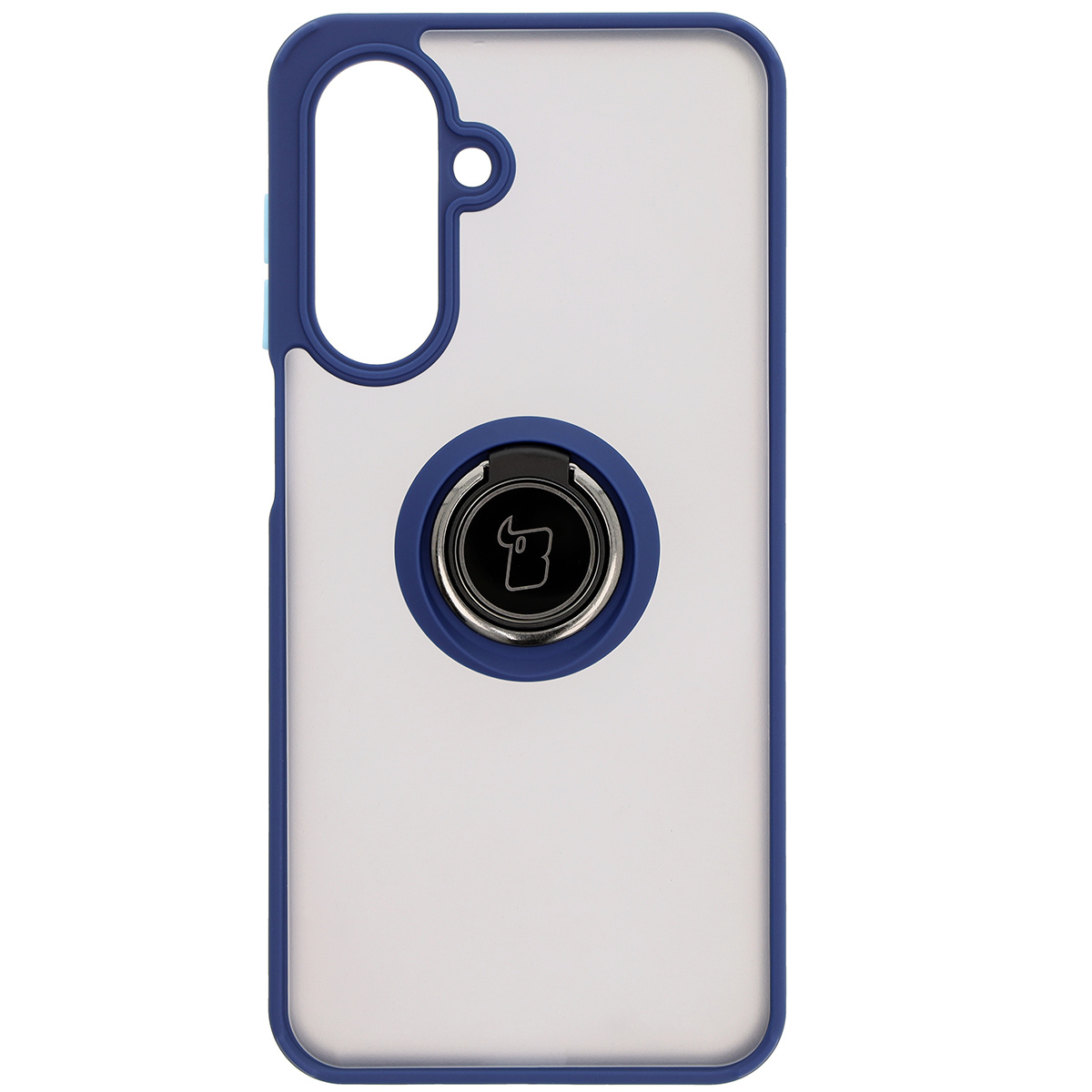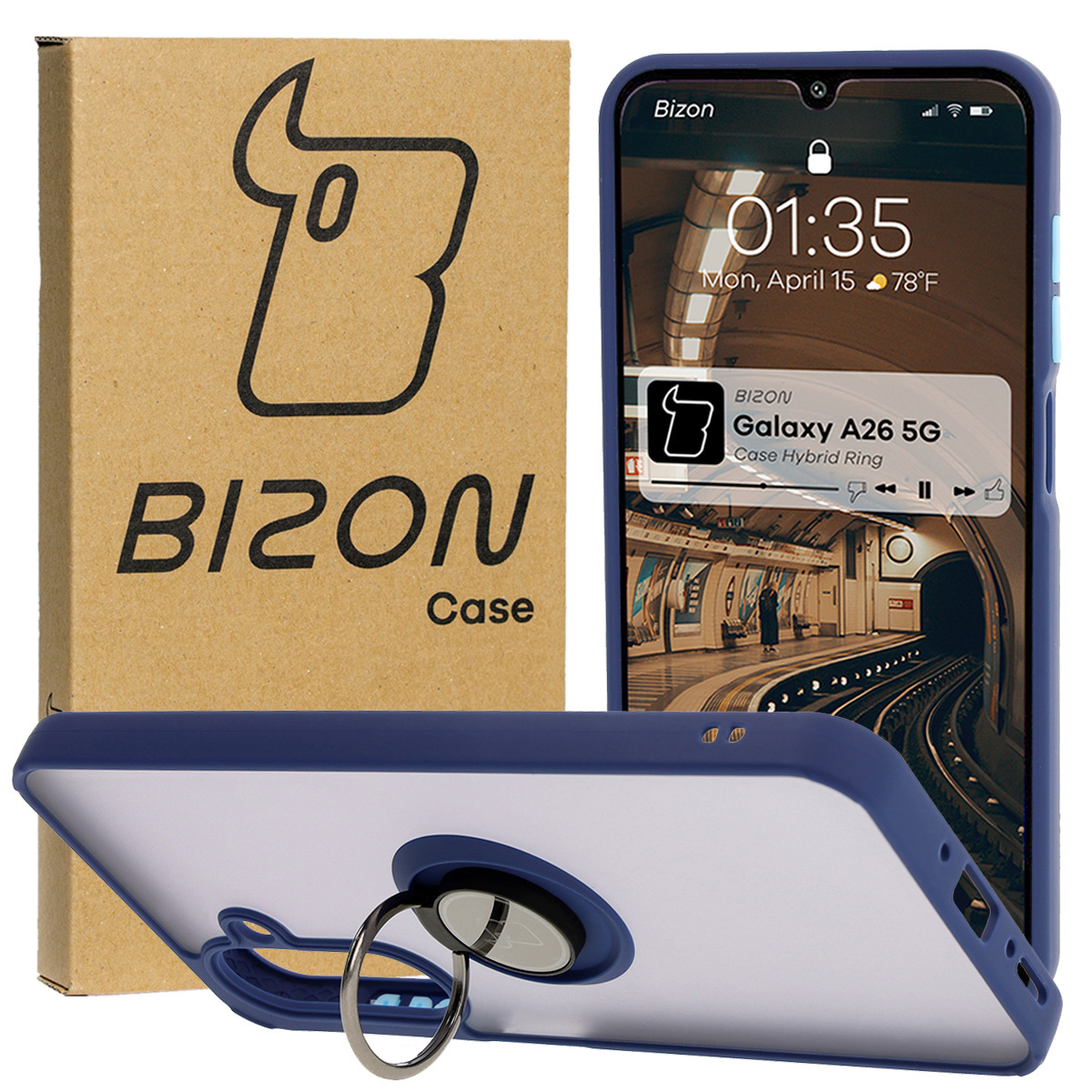 Etui z uchwytem na palec Bizon Case Hybrid Ring do Galaxy A26 5G, przydymione z granatową ramką