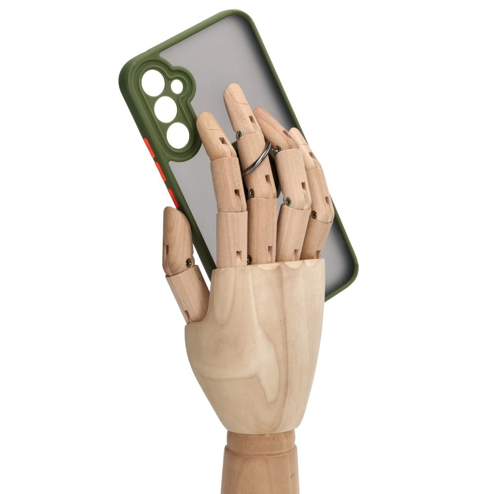 Etui z uchwytem na palec Bizon Case Hybrid Ring do Galaxy A34 5G, przydymione z zieloną ramką