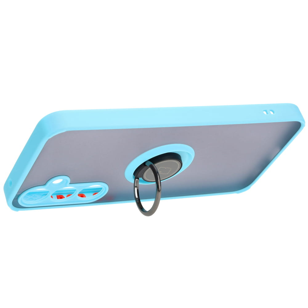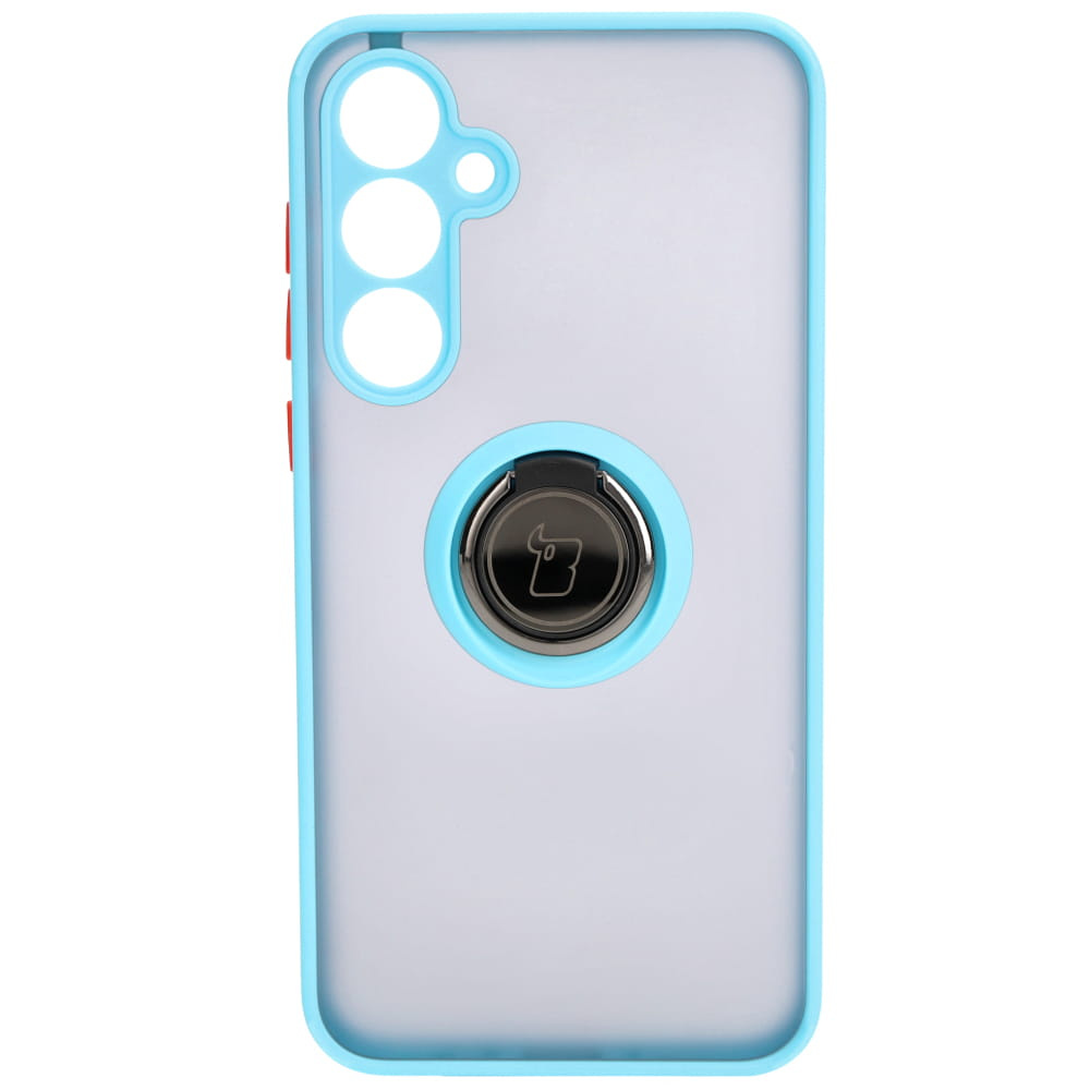 Etui z uchwytem na palec Bizon Case Hybrid Ring do Galaxy A35 5G, przydymione z jasnoniebieską ramką