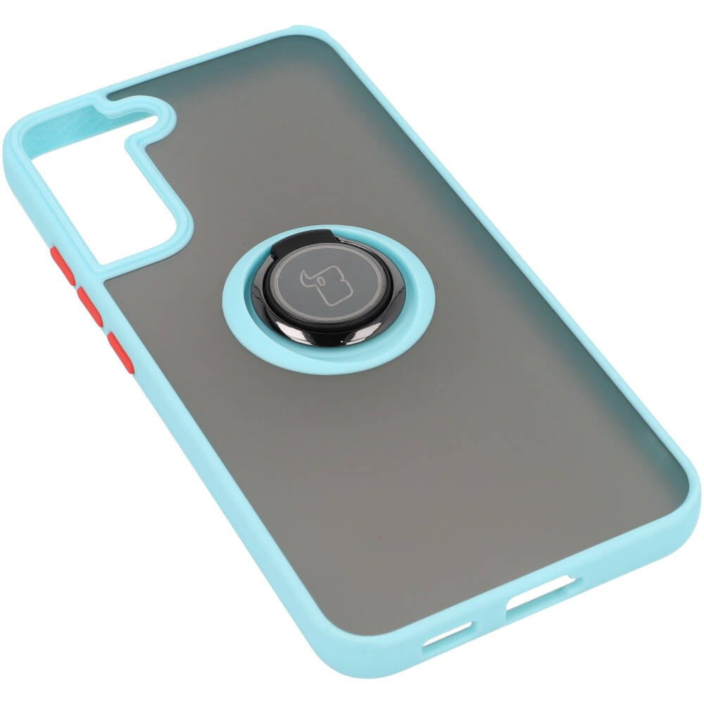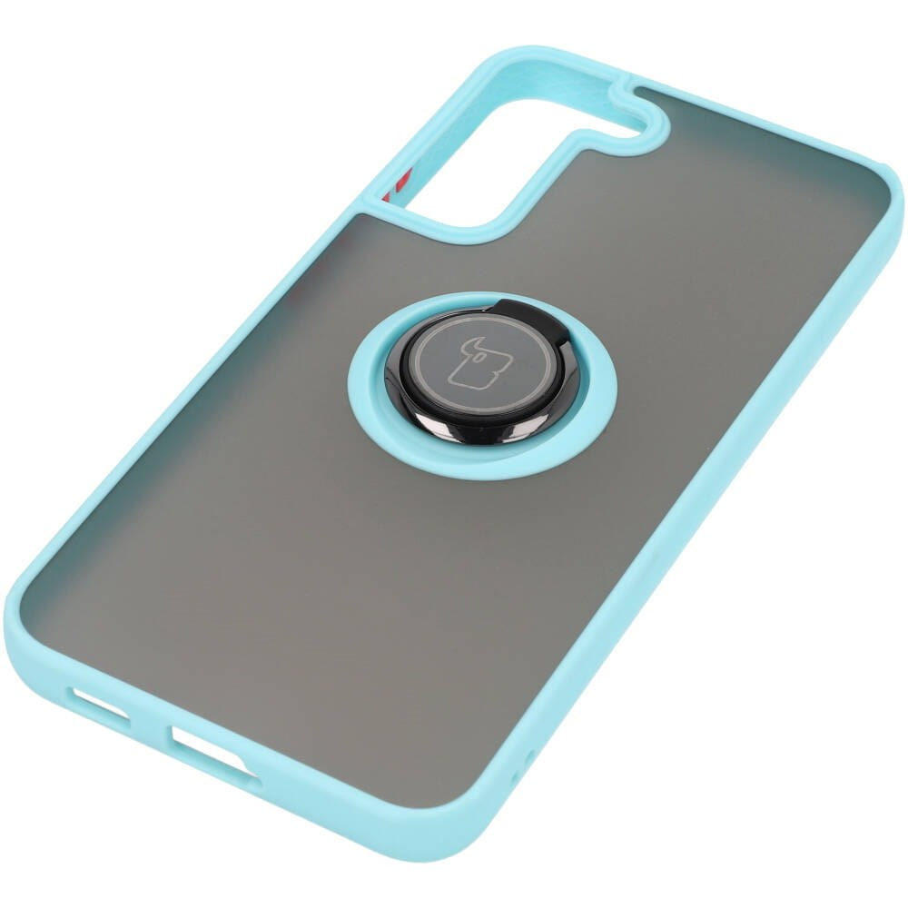 Etui z uchwytem na palec Bizon Case Hybrid Ring do Galaxy S22 Plus, przydymione z jasnoniebieską ramką