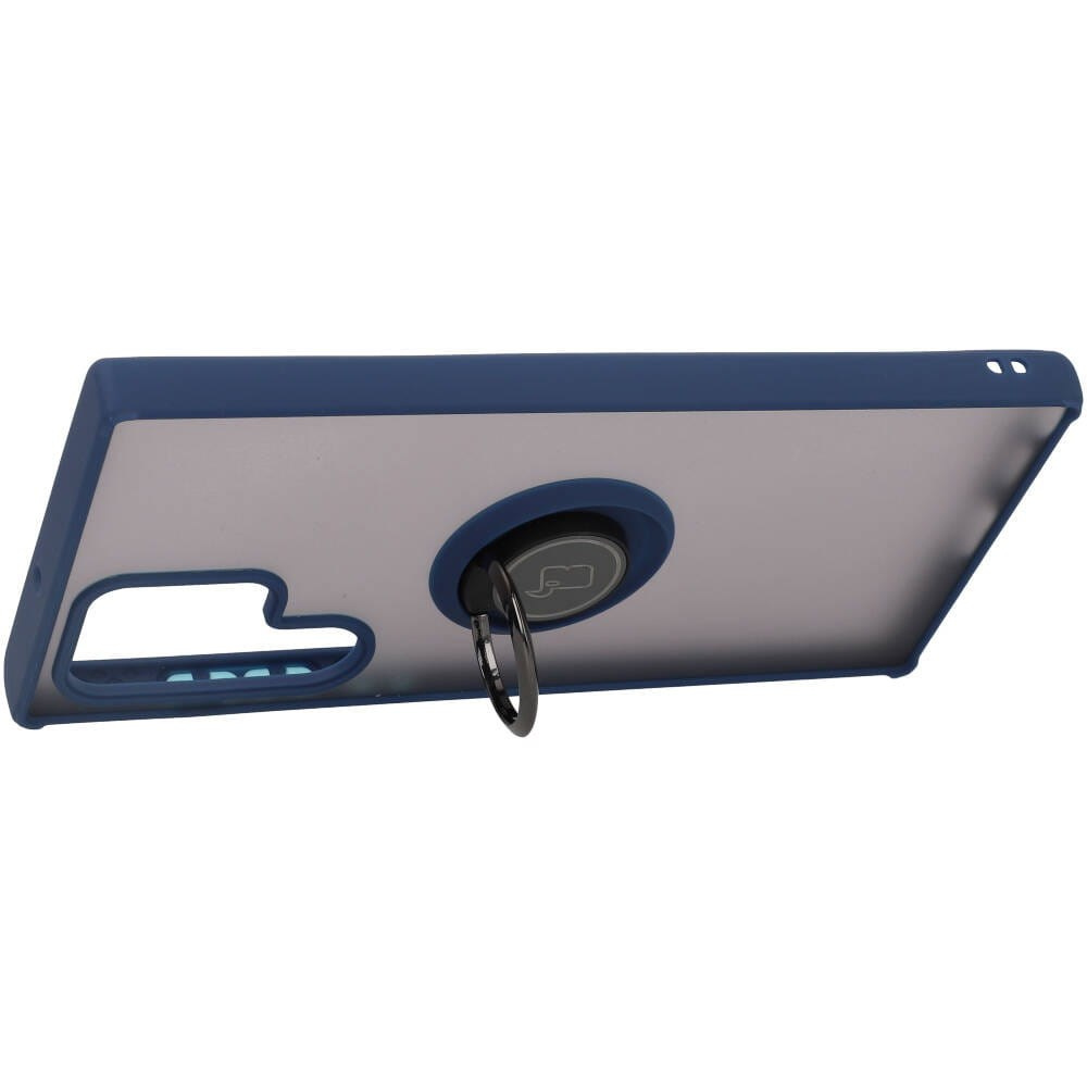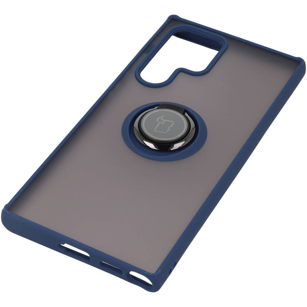 Etui z uchwytem na palec Bizon Case Hybrid Ring do Galaxy S22 Ultra, przydymione z granatową ramką