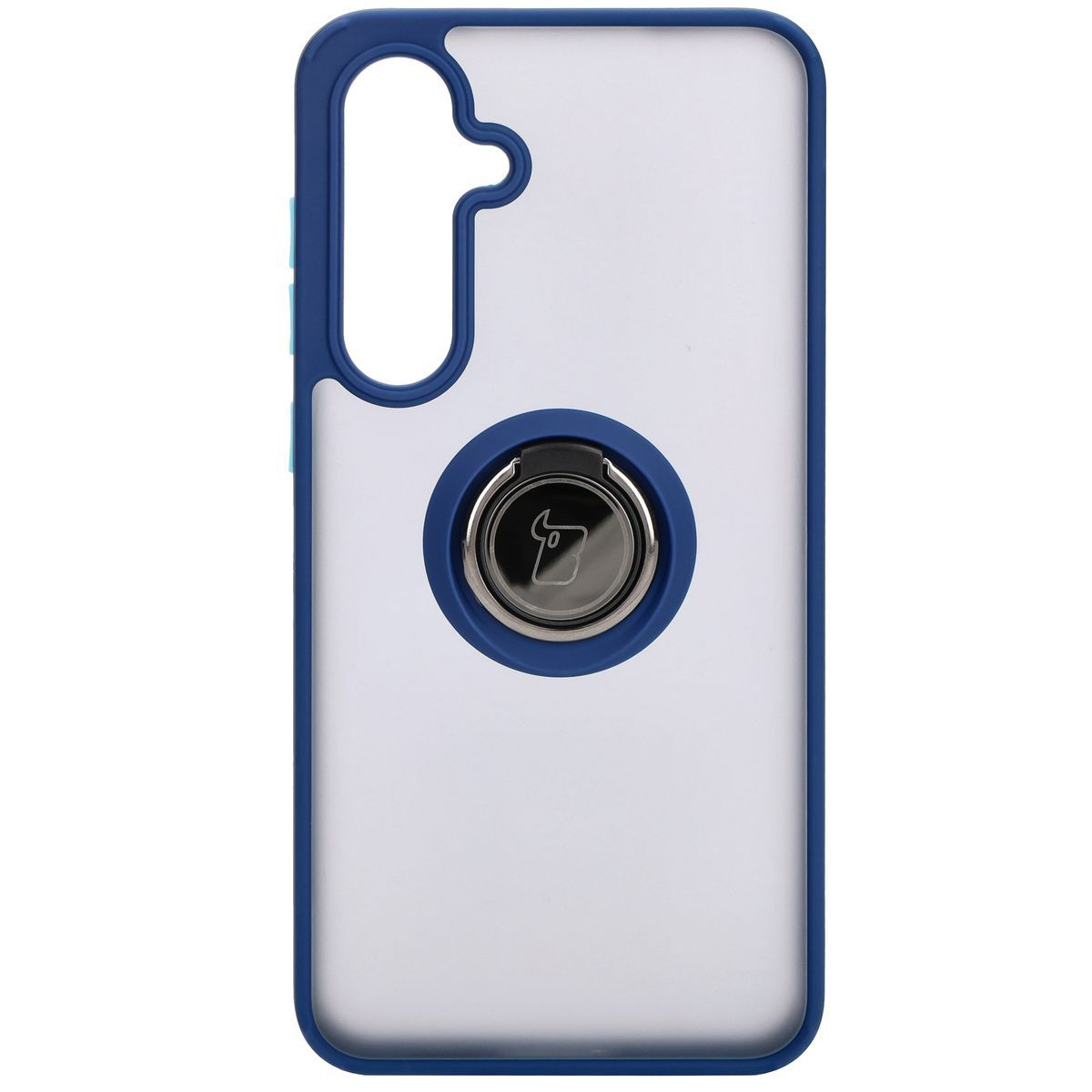 Etui z uchwytem na palec Bizon Case Hybrid Ring do Galaxy S24 FE, przydymione z granatową ramką
