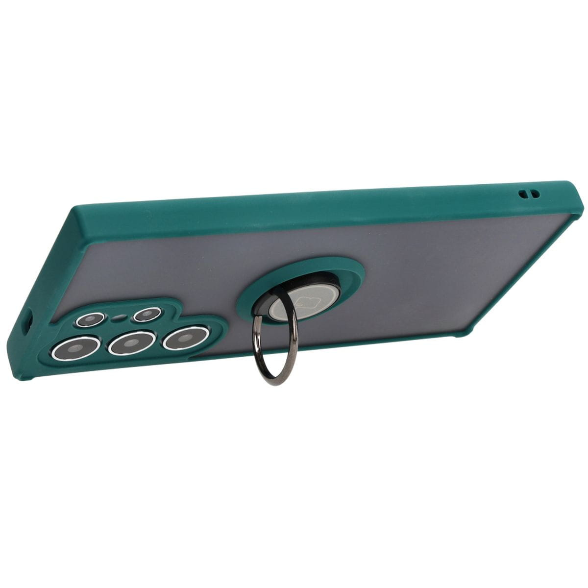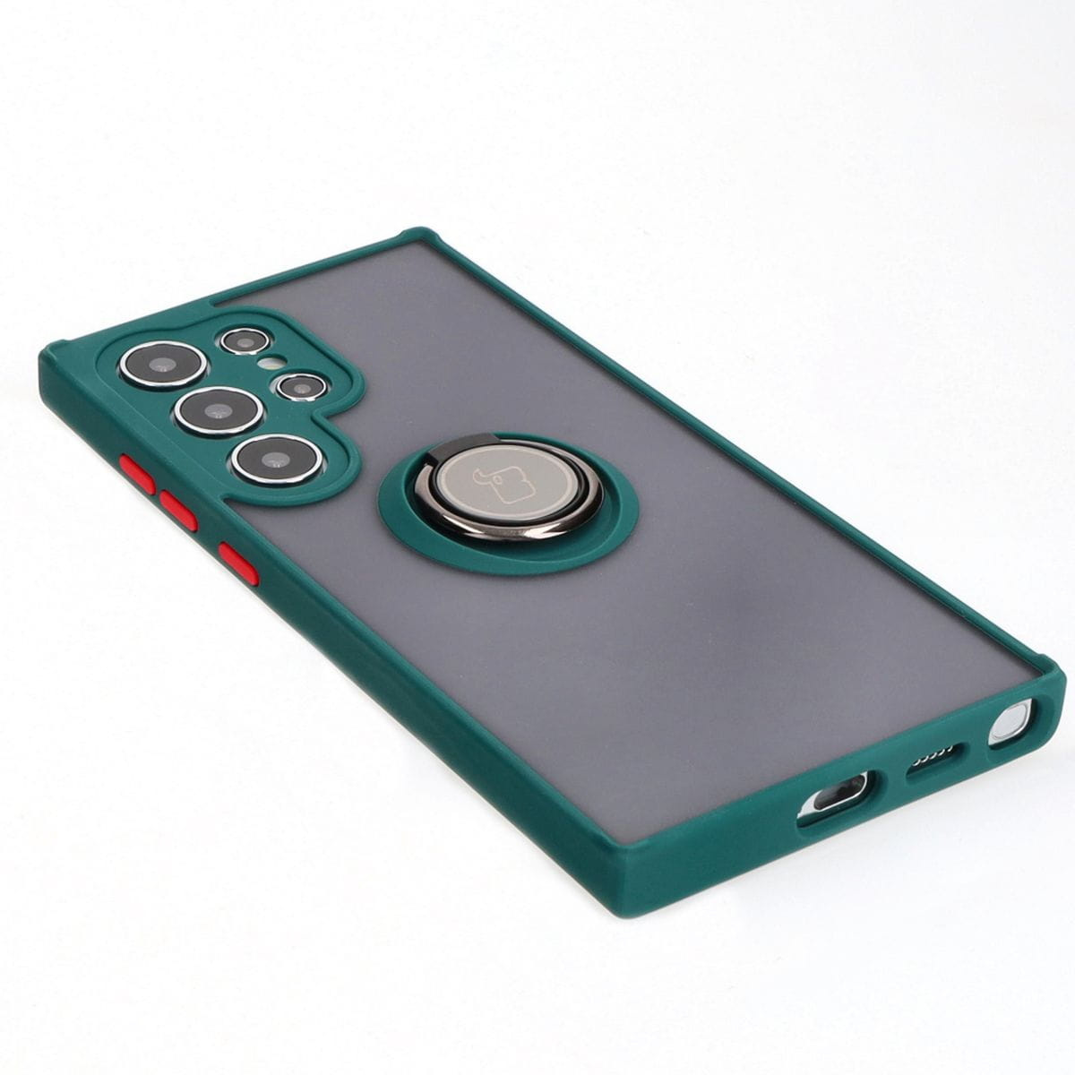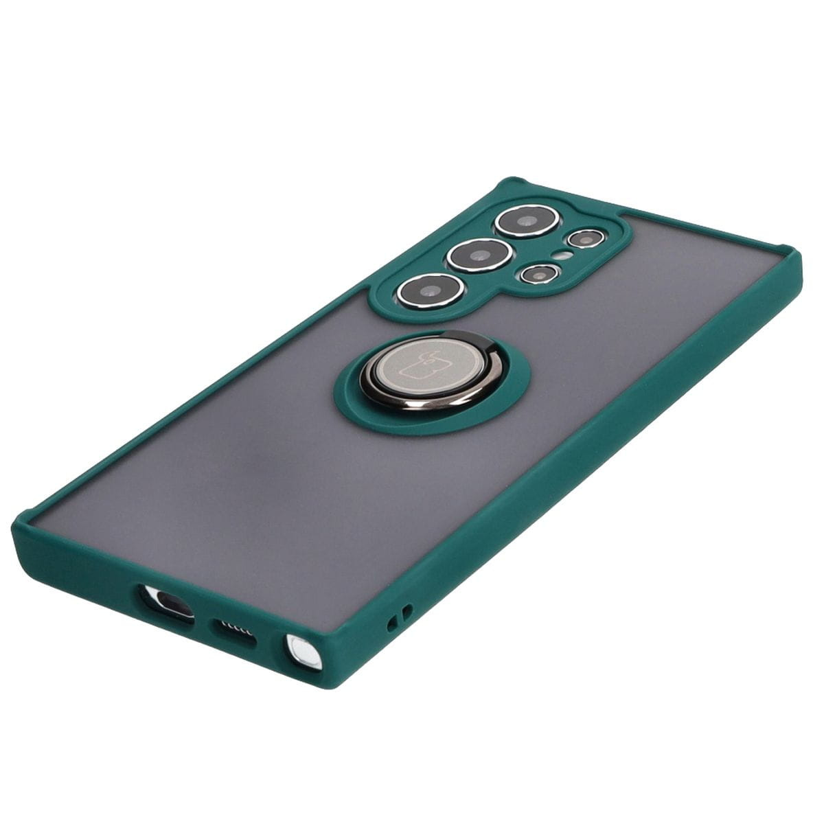 Etui z uchwytem na palec Bizon Case Hybrid Ring do Galaxy S24 Ultra, przydymione z ciemnozieloną ramką