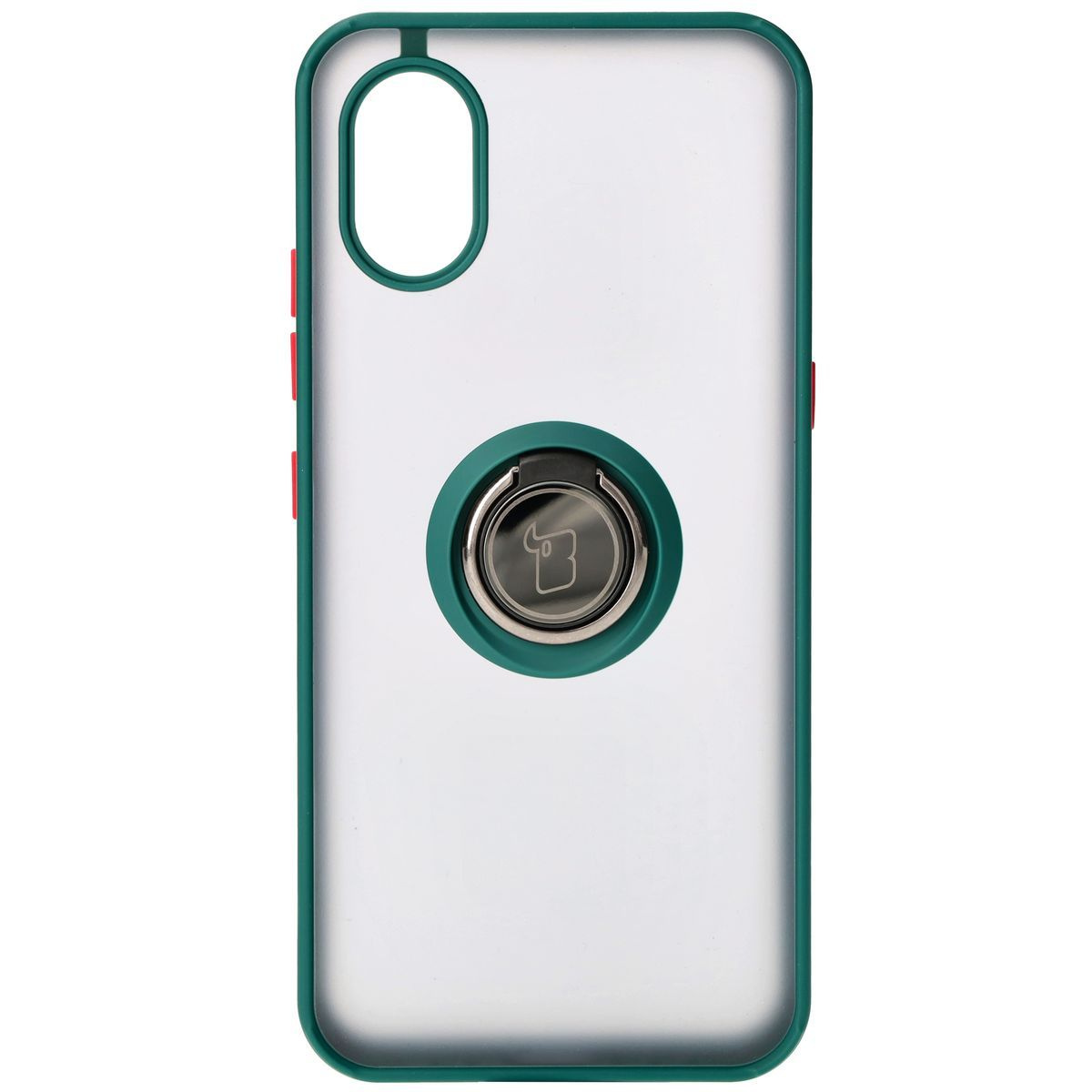 Etui z uchwytem na palec Bizon Case Hybrid Ring do Galaxy Xcover7, przydymione z ciemnozieloną ramką