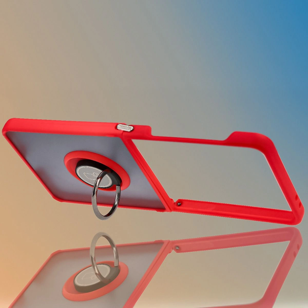 Etui z uchwytem na palec Bizon Case Hybrid Ring do Galaxy Z Flip7, przydymione z czerwoną ramką