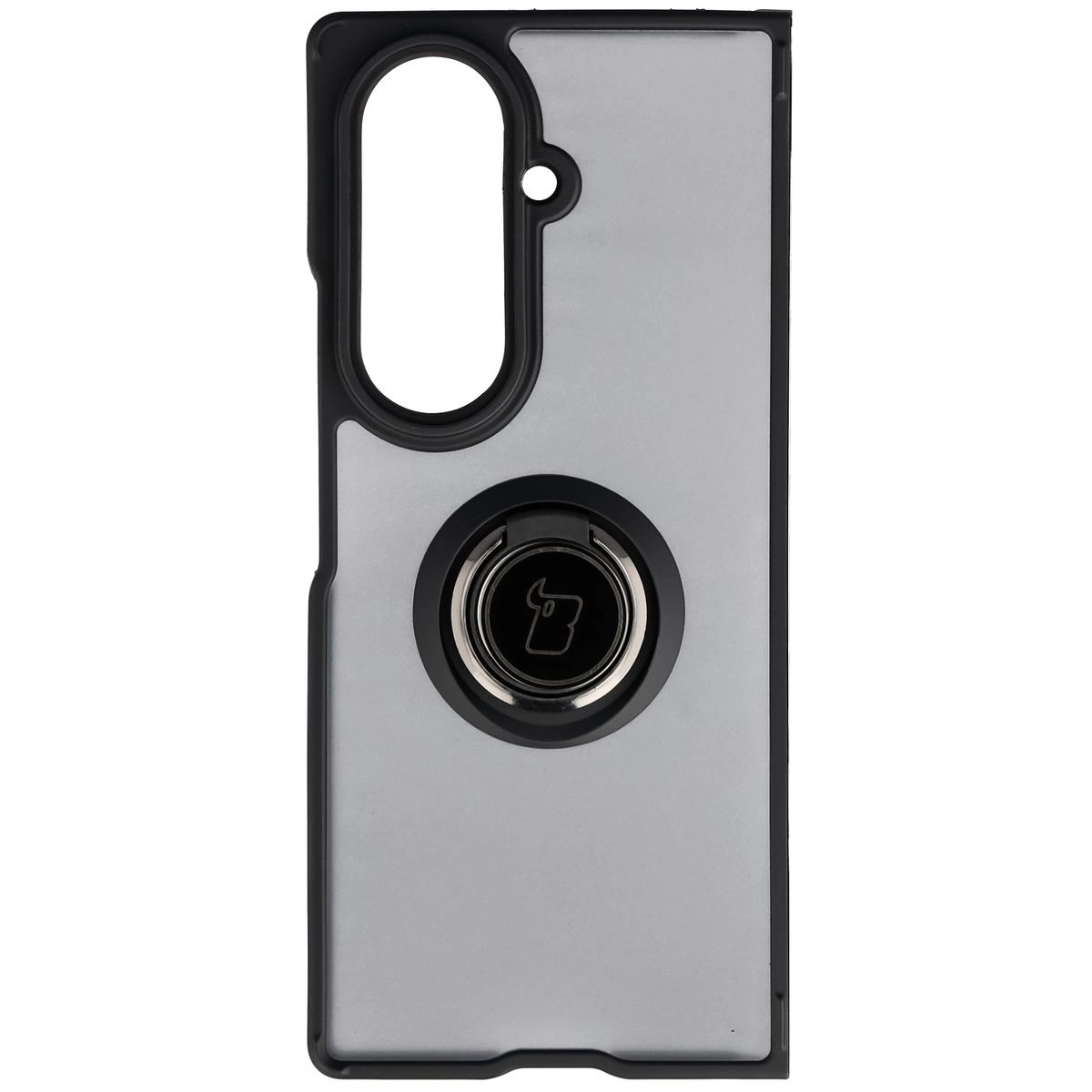 Etui z uchwytem na palec Bizon Case Hybrid Ring do Galaxy Z Fold7, przydymione z czarną ramką